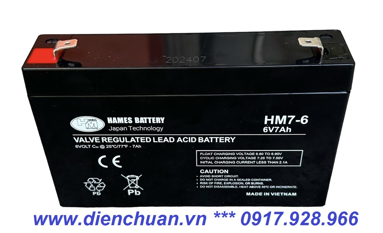 Ắc quy 6V 7Ah HAMES HM7-6 Chuyên Dùng cho : UPS, thiết bị viễn thông, thiết bị mạng , cân điện tử, quạt tích điện, thiết bị đồ chơi ,xe máy điện trẻ em, otô điện trẻ em ...