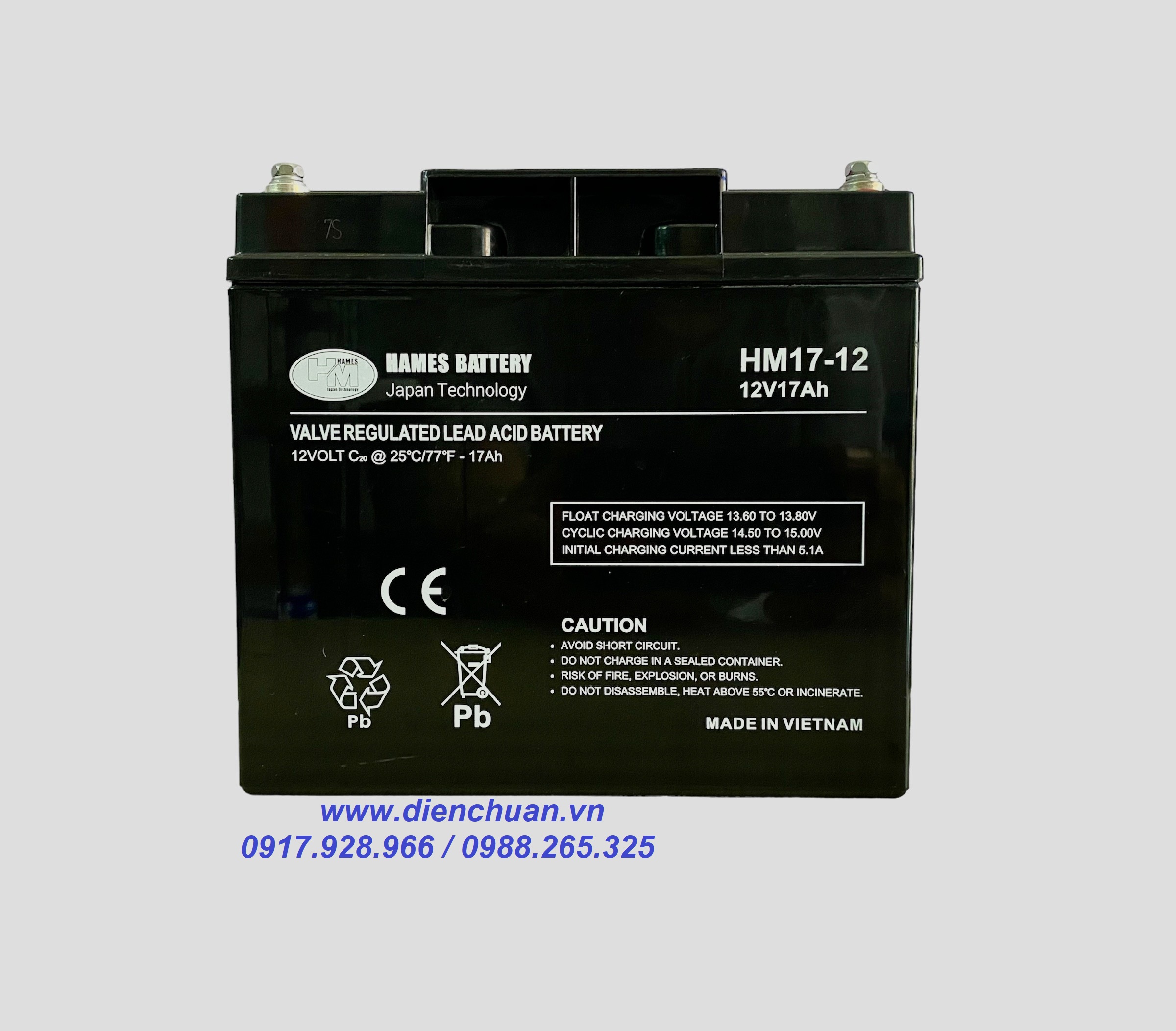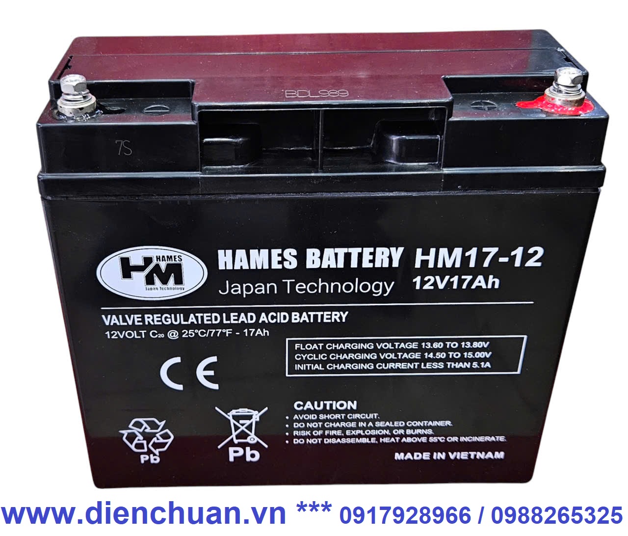 Tại Công ty Điện Chuẩn Điện Chuẩn đang bán bình Ắc quy Hames 12V-17Ah HM17-12 là : 620,000 VND giá đã bao gồm thuế Vat 10%, quý khách có thể dễ dàng liên hệ với chúng tôi qua số điện thoại / ZALO: 0917.928.966 / 0988.265.325 để có thể nhận được các khuyến mại và mua sản phẩm ắc quy chính hàng với giá rẻ hơn so với các cửa hàng khác trong khu vực.