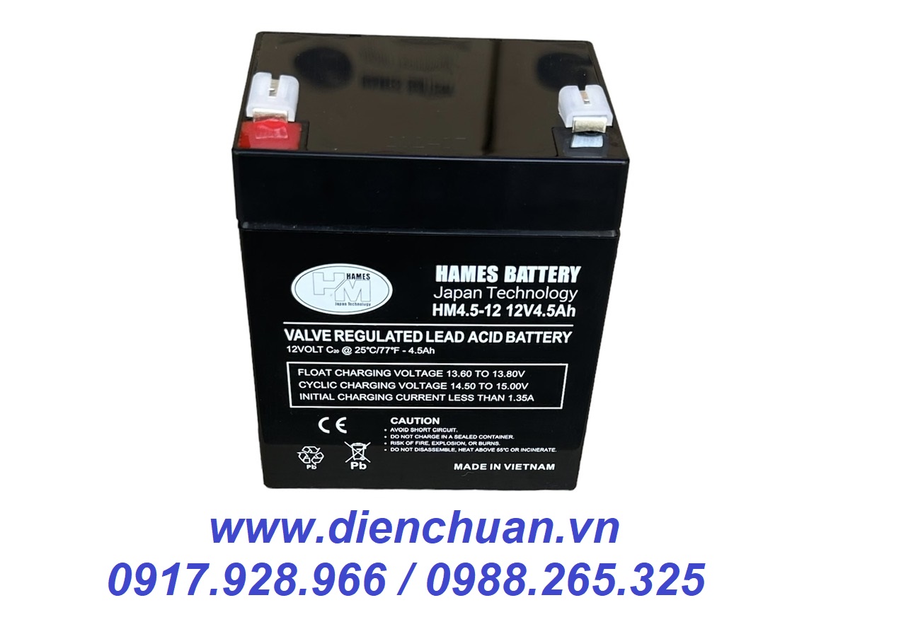 Ắc quy 12V-4.5Ah HAMES HM4.5-12 ( bình ắc quy 12V 4.5Ah kích thước vuông)