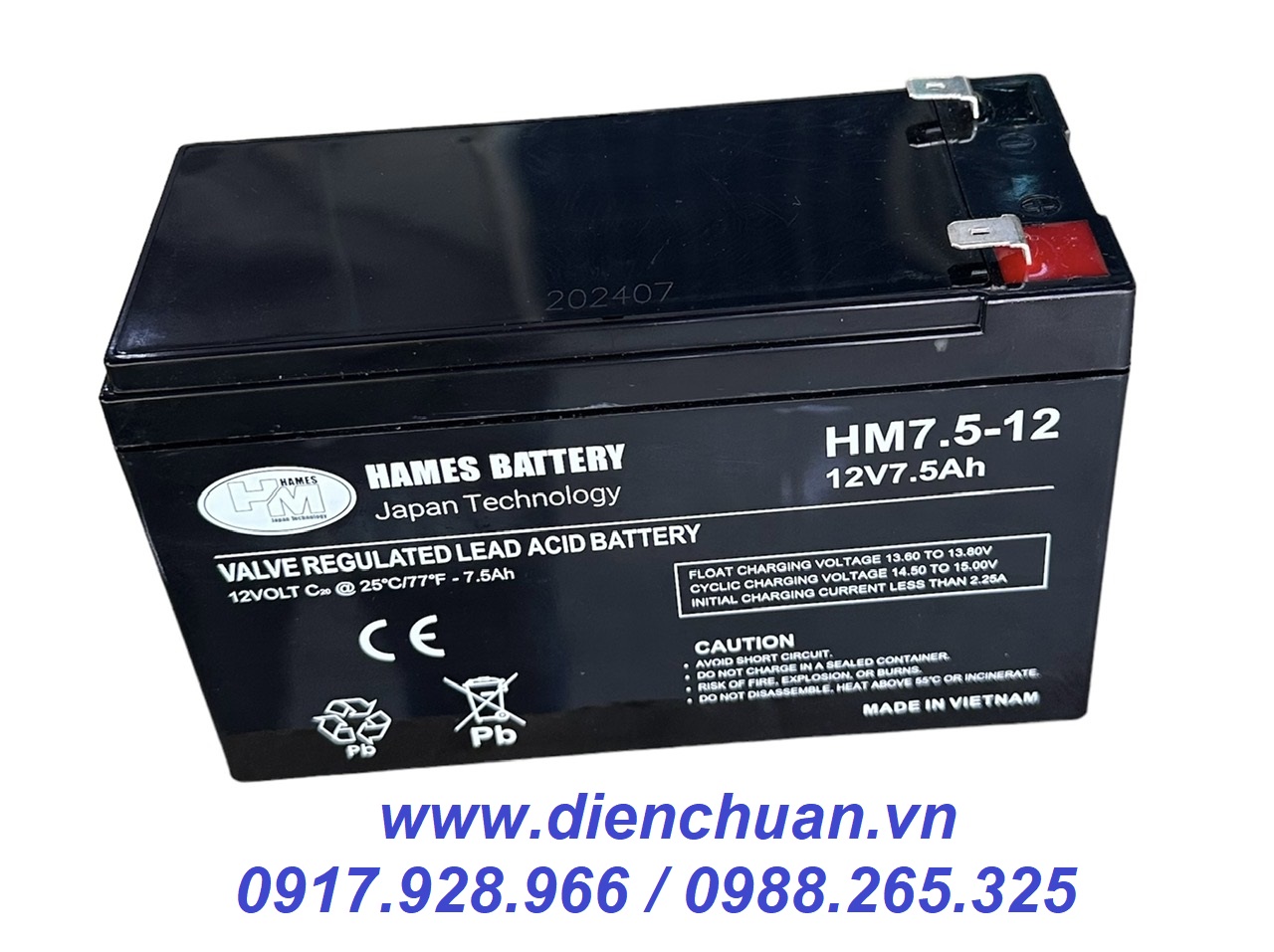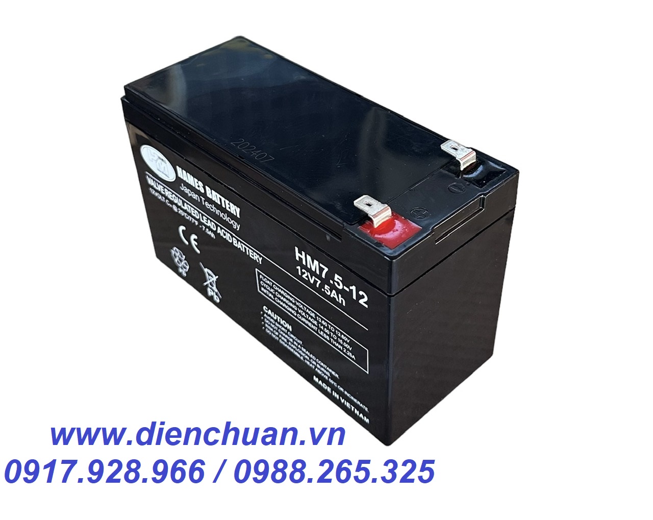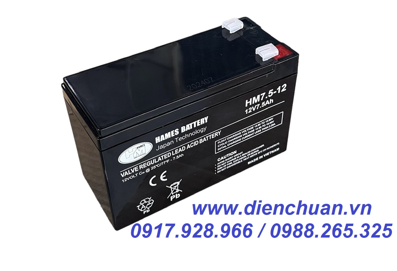 Công ty Điện Chuẩn chuyên cung cấp các sản phẩm ắc quy thương hiệu HAMES chính hãng tại thị trường Việt Nam . Ắc quy Hames HM7.5-12 (12V 7.5Ah) được công ty Điện Chuẩn bán tại các tỉnh Hà Nội, Bắc Ninh, Ninh Bình, Nam Định, Ninh Bình, Hải Phòng, Đà Nẵng, Thanh Hoá, Thành phố Hồ Chí Minh và tất cả các tỉnh thành trên cả nước với giá thành hợp lý và chế độ bảo hành chu đáo nhất.