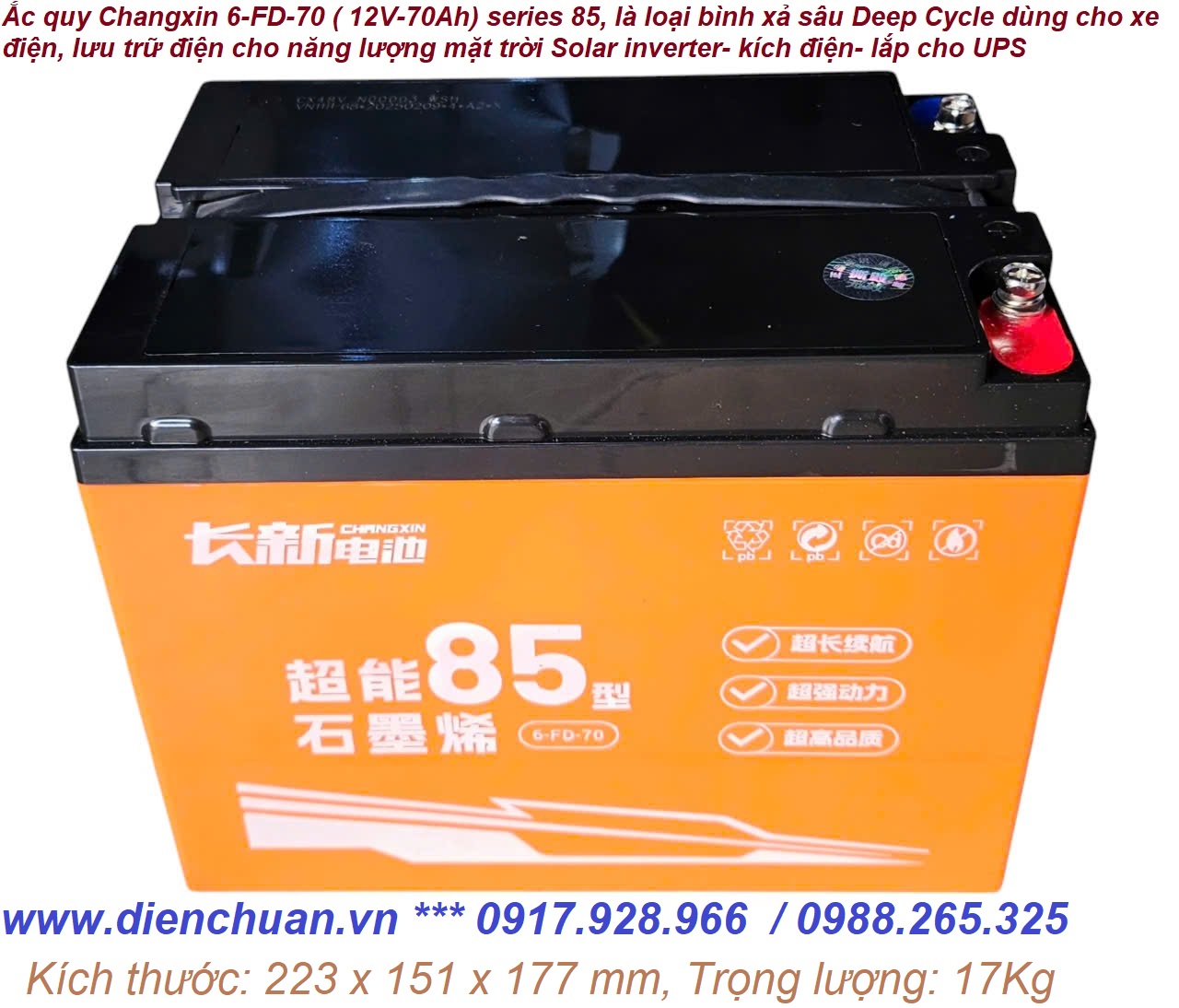 Ắc quy 12V 70AH CHANGXIN series 85 ( 6-FD-70) loại xả sâu dùng cho xe điện- Solar - kích điện inverter