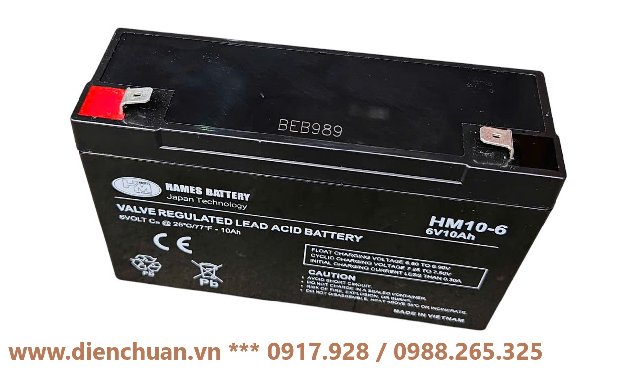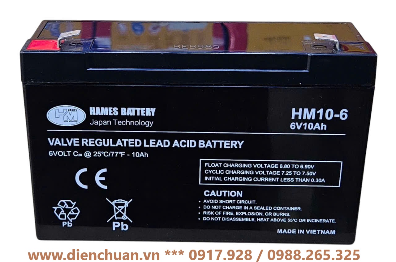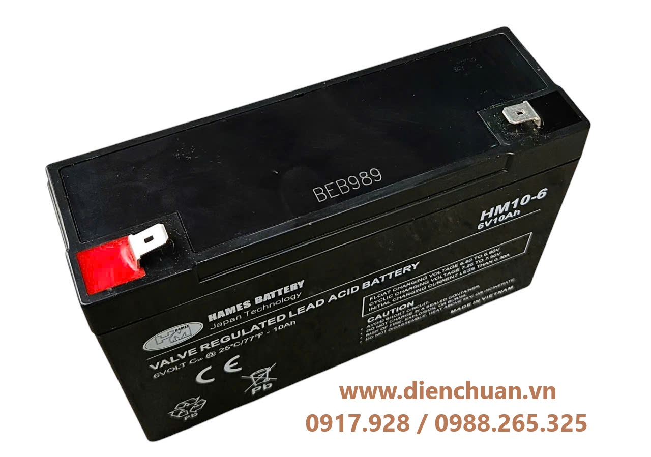 Công ty Điện Chuẩn chuyên cung cấp các sản phẩm ắc quy thương hiệu HAMES chính hãng tại thị trường Việt Nam . Ắc quy 6V-10Ah Hames HM10-6 ( Pin sạc 6V 10Ah) được công ty Điện Chuẩn bán tại các tỉnh Hà Nội , Bắc Ninh, Nam Định, Ninh Bình, Hải Phòng , Đà Nẵng, Thanh Hoá, Thành phố Hồ Chí Minh và tất cả các tỉnh thành trên cả nước với giá thành hợp lý và chế độ bảo hành chu đáo nhất.