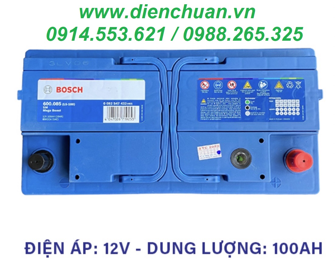 Bosch DIN 600.085 (12V-100Ah) là bình ắc quy miễn bảo dưỡng dùng cho ô tô.
