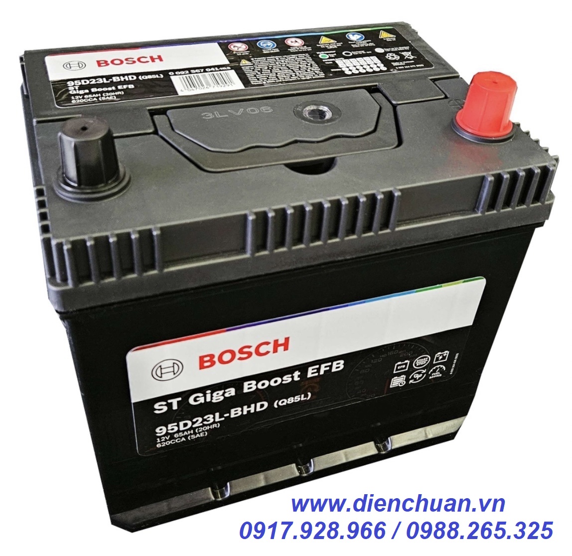 Ắc quy Bosch EFB Q-85 (12V-65Ah) được cung cấp bởi công ty TNHH Robert Bosch có trụ sở chính tại Đức - là thương hiệu phụ từng và thiết bị ô tô hàng đầu trên toàn cầu.