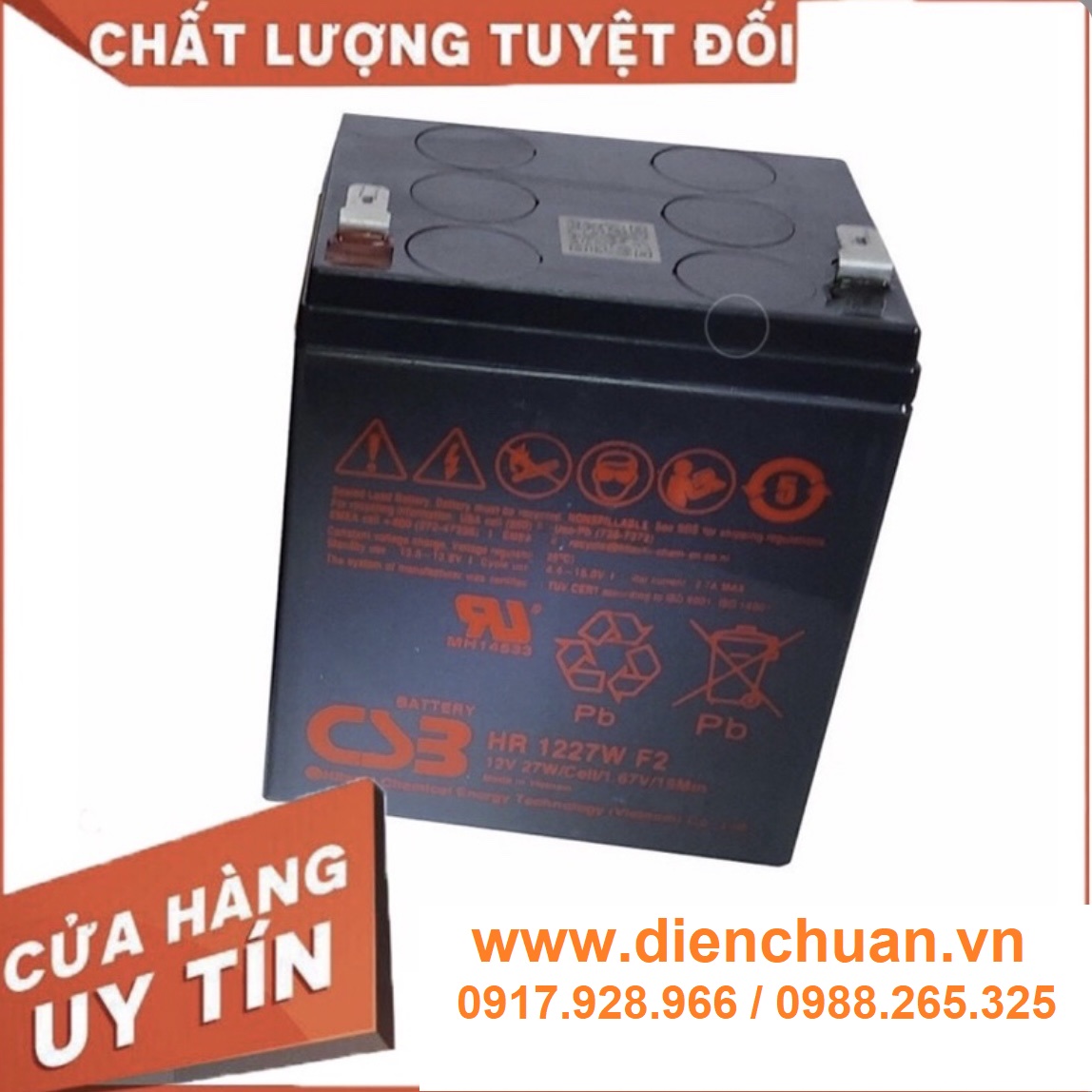 Công ty Điện Chuẩn chuyên cung cấp các sản phẩm ắc quy thương hiệu CSB chính hãng giá rẻ . Ắc quy CSB HR1227W / CSB Battery HR1227W dùng cho UPS, thiết bị viễn thông, thiết bị mạng, cứu hộ thang máy ... vv ... được công ty Điện Chuẩn bán tại các tỉnh Hà Nội , Bắc Ninh , Ninh Bình , Nam Định, Ninh Bình,Hải Phòng , Đà Nẵng , Thanh Hoá và Thành phố Hồ Chí Minh và tất cả các tỉnh thành trên cả nước với giá thành hợp lý phải chăng và chế độ bảo hành chu đáo nhất