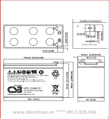 Quý khách cần tư vấn mua hàng ắc quy CSB UPS 12460 F2 (12V 460W/ 9Ah) xin vui lòng liên hệ: