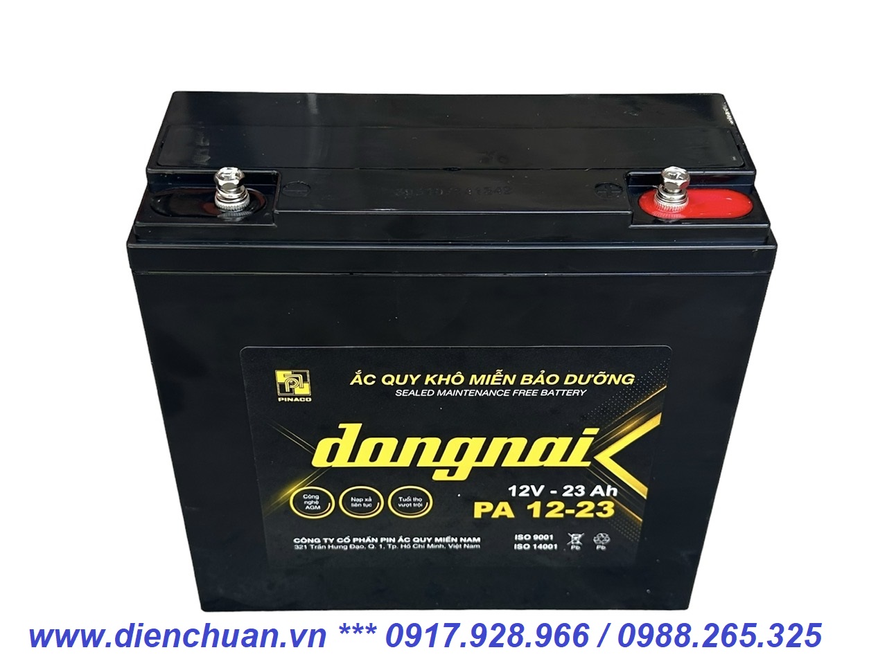 Bình Ắc quy Đồng Nai 12V-23Ah PA12-23 được công ty Điện Chuẩn phân phối đảm bảo hàng chính hãng, giá thành tốt nhất và chế độ bảo hành chu đáo nhất.