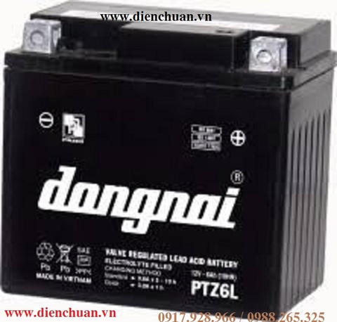 Bình ắc quy xe máy ĐỒNG NAI PTZ6L (12V-6Ah) là loại bình ắc quy khô, kín khí, miễn bảo dưỡng, không cần châm nước, khi mua về là có thể sử dụng ngay. Thiết kế bình ắc quy có kiểu dáng nhỏ gọn, kết cấu bình chắc chắn, khả năng chống rung động tốt, đáp ứng các tiêu chuẩn kỹ thuật IEC 60095 và JIS D5301 - D5302 của Nhật Bản.