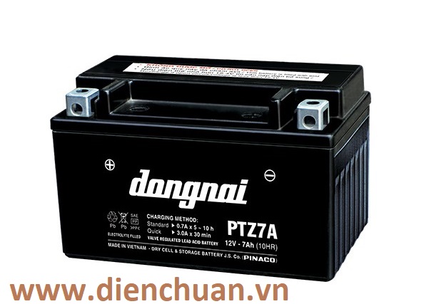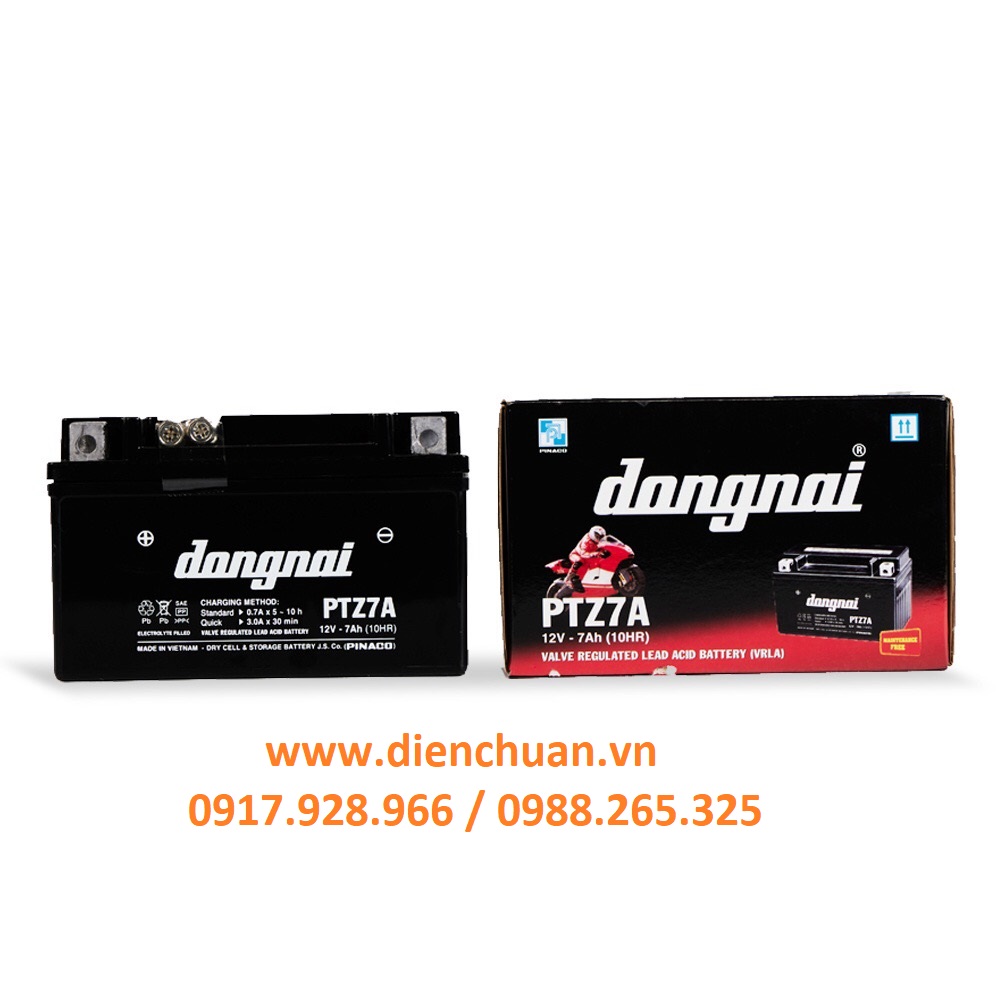 Bình ắc quy xe máy ĐỒNG NAI PTZ7A (12V-7Ah) là loại bình ắc quy khô, kín khí, miễn bảo dưỡng, không cần châm nước, khi mua về là có thể sử dụng ngay. Thiết kế bình ắc quy có kiểu dáng nhỏ gọn, kết cấu bình chắc chắn, khả năng chống rung động tốt, đáp ứng các tiêu chuẩn kỹ thuật IEC 60095 và JIS D5301 - D5302 của Nhật Bản.