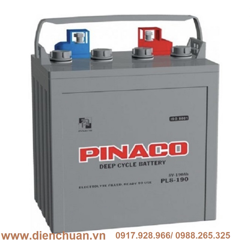 Ắc Quy Pinaco PL8-190 8V-190AH là loại ắc quy Axit chì xả sâu (Deep Cycle) được sử dụng cho các loại xe điện chạy ở các khu du lịch , bãi biển và dùng cho xe golf ( xe chạy trong các sân gôn ),máy chà sàn, xe chở khách trong khu du lịch, xe nâng hàng, xe nâng người lên cao, hệ thống năng lượng mặt trời, và nhiều thiết bị chuyên dụng khác...