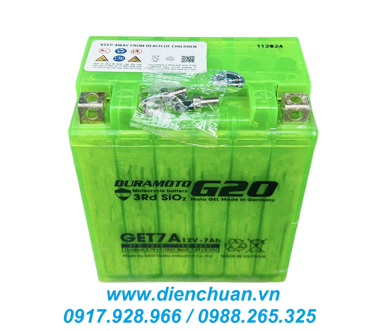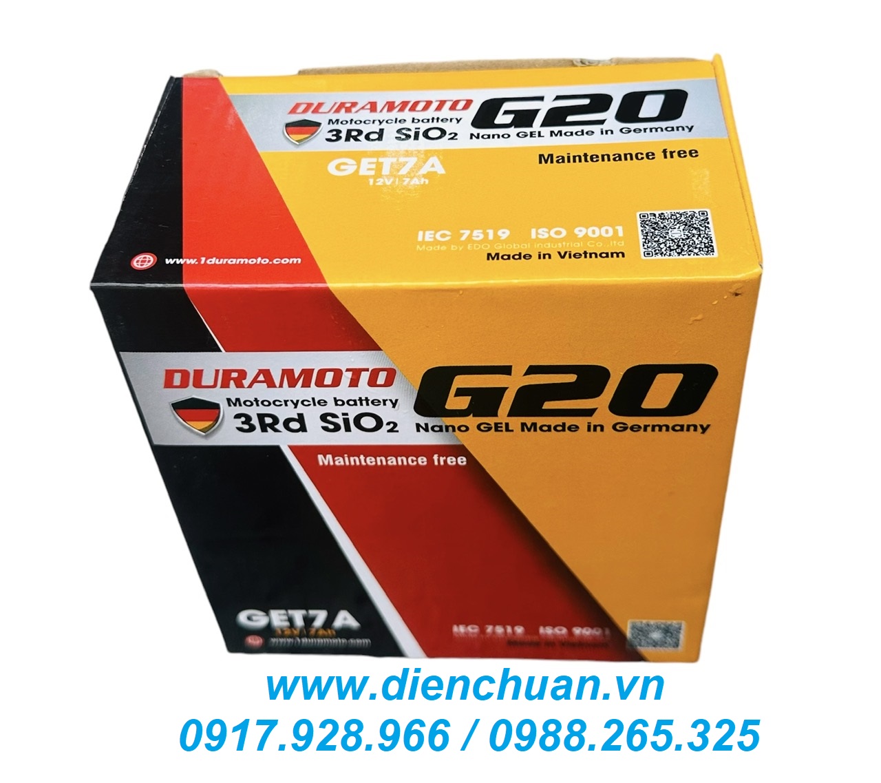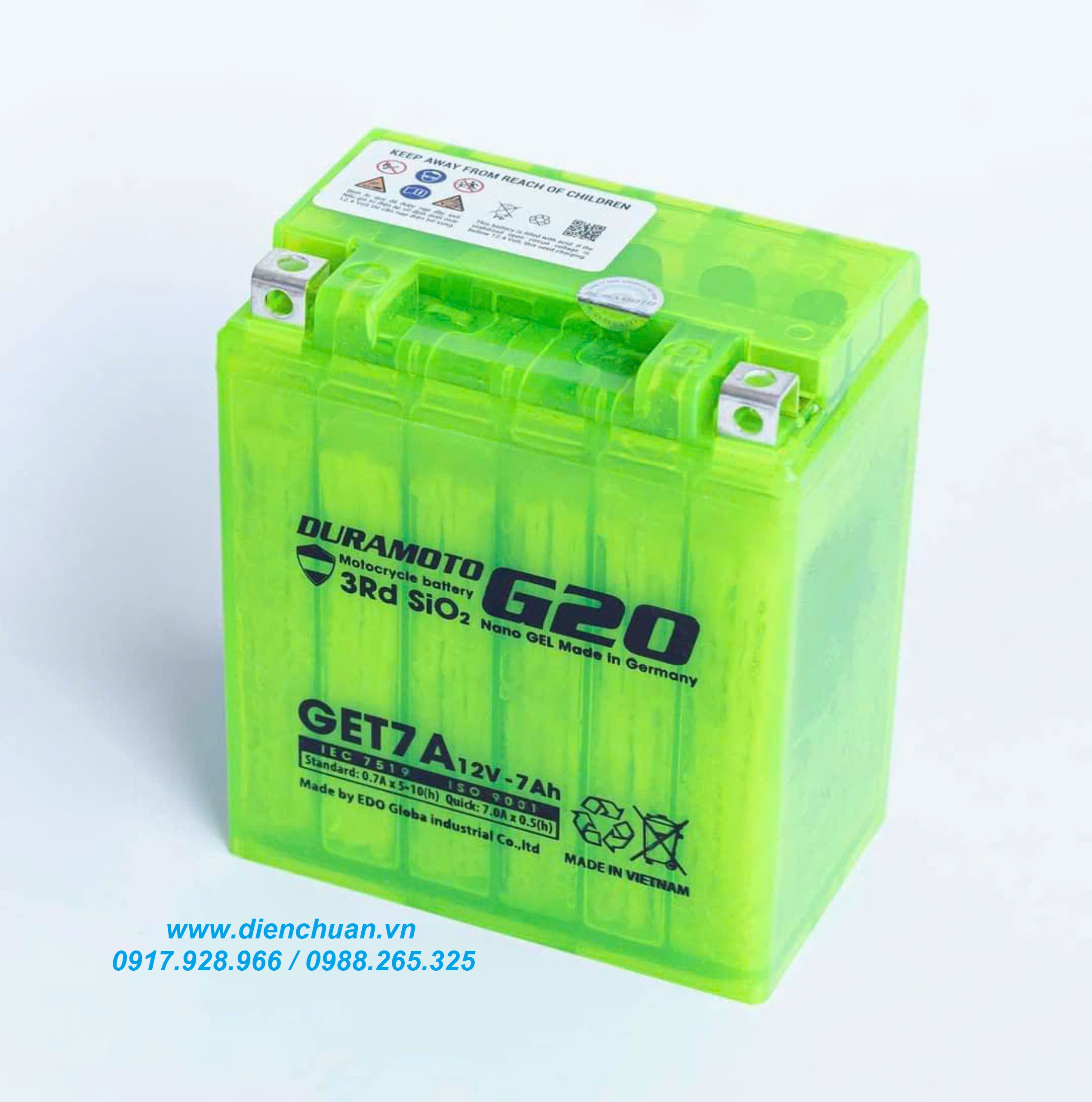 Ắc quy Duramoto GET7A ( 12V 7Ah) công nghệ GEL của Đức dùng cho xe máy Liberty, Medley, Vespa Sprint, SH nhập, Dylan, @, PS, SCR / Ắc quy xe máy Duramoto GET7A ( 12V 7Ah) Seris G20 công nghệ Nano GEL Made in Germany