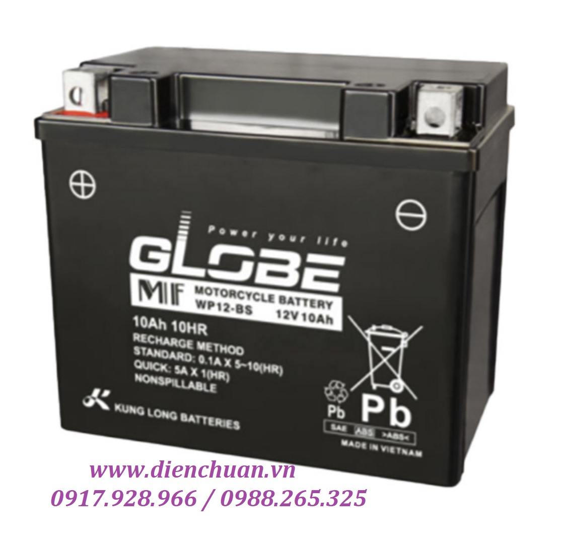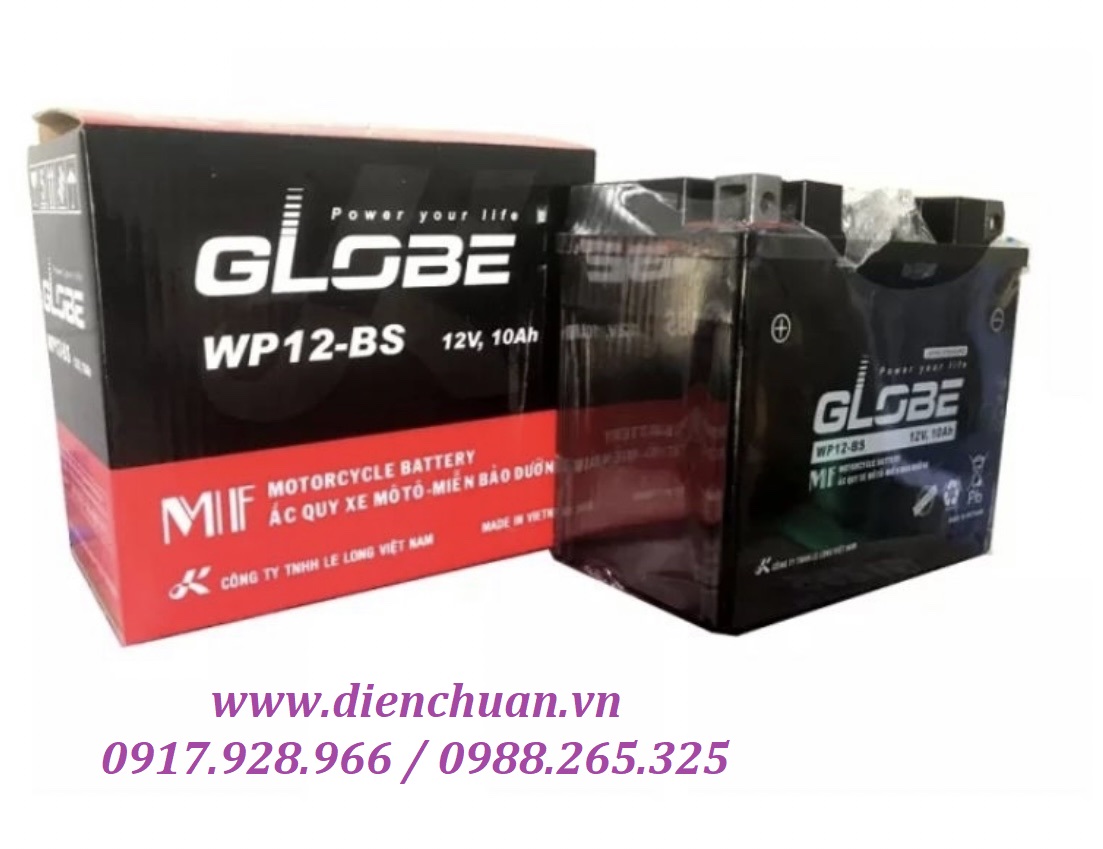 Ắc quy Globe 12V 10Ah WP12-BS dùng cho xe máy Piaggio Vespa, Xe máy phân khối Lớn, ắc quy phụ xe Mercedes , Volvo
