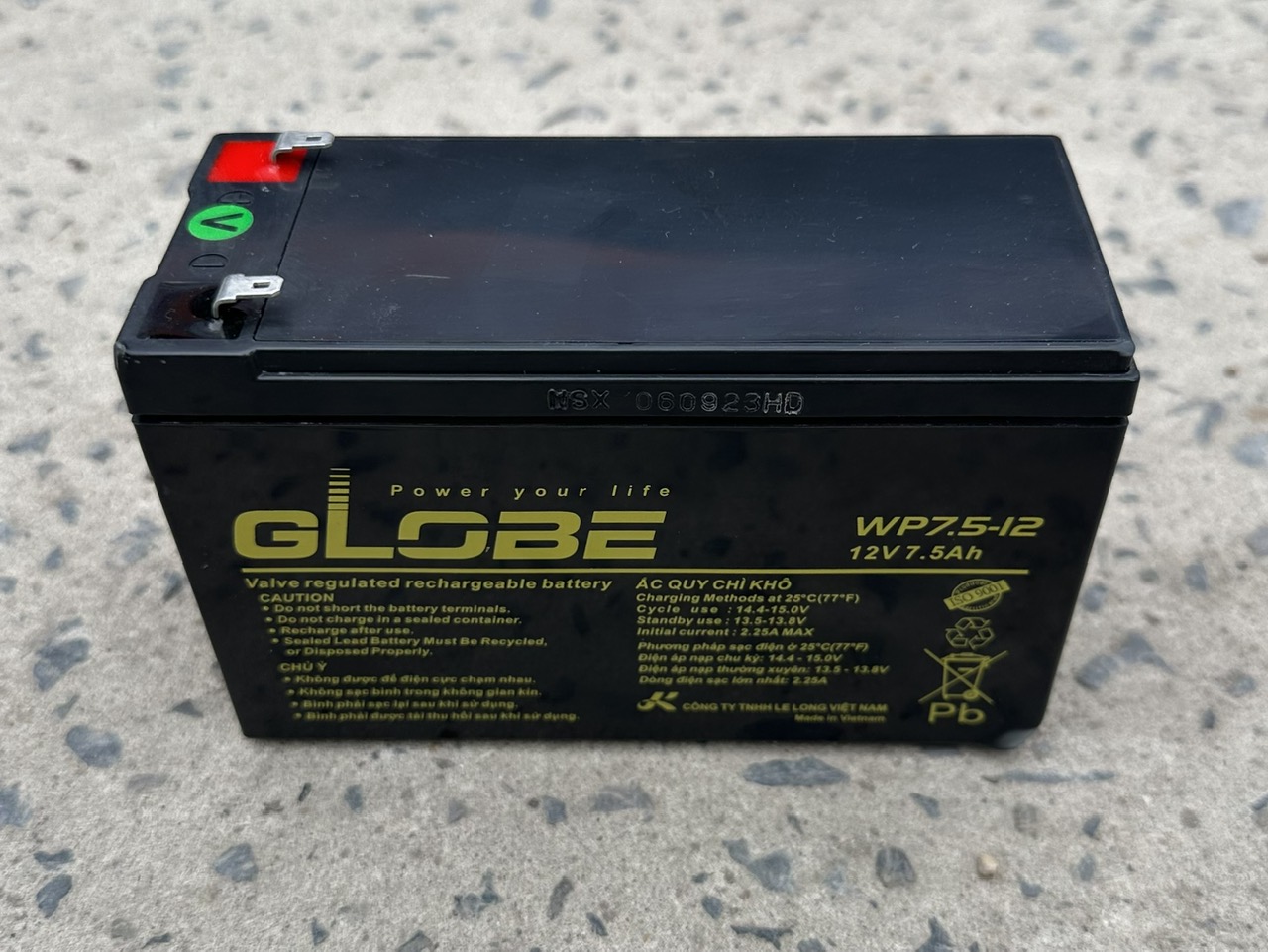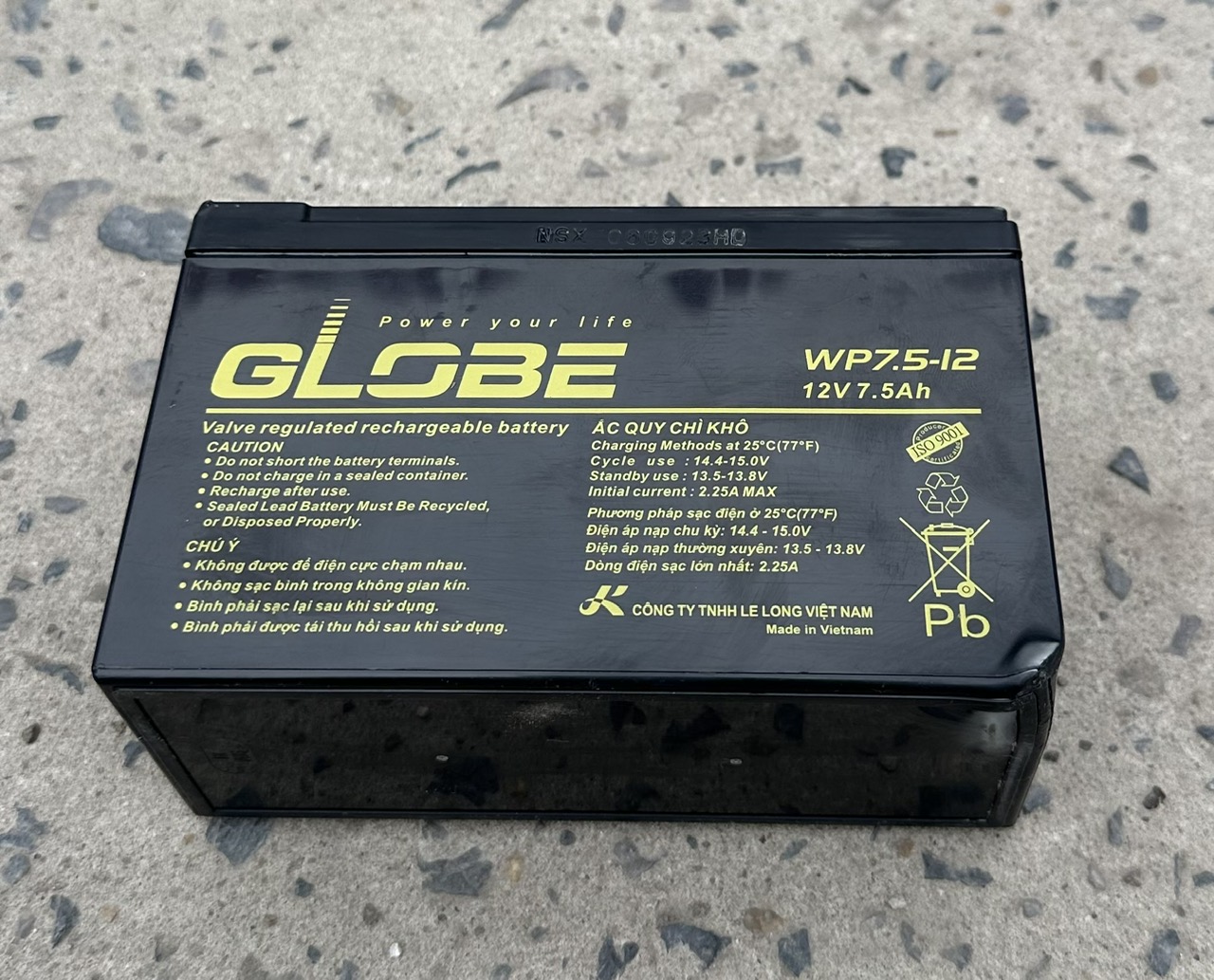 Hình ảnh chụp thực tế bình ắc quy Globe 12V-7.5AH (WP7.5-12 ) - bình xước- móp góc
