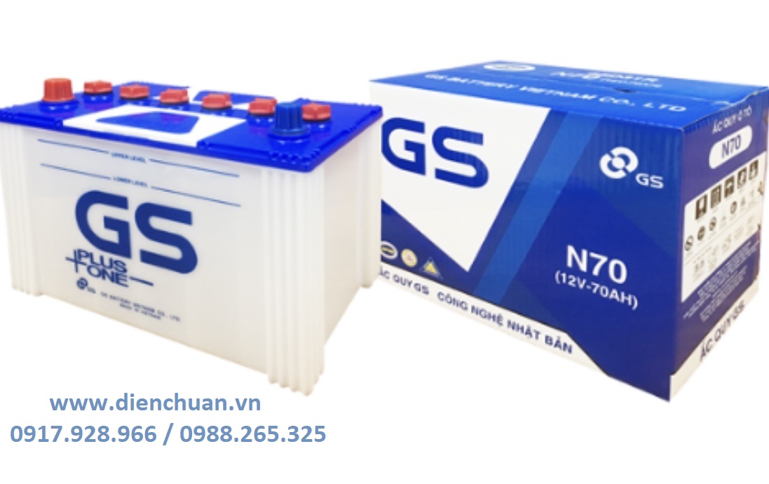 GS N70 Là ắc quy nước, khi mua đã được nhà bán hàng cho dung dịch axit vào bình. Khách hàng mua về chỉ việc lắp đặt và sử dụng.