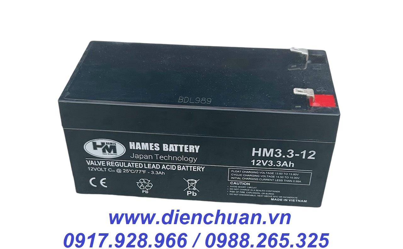 Tại Công ty Điện Chuẩn đang bán Bình ắc quy Hames HM3.3-12 ( 12V 3.3Ah ) là : 210,000 VND, quý khách có thể dễ dàng liên hệ với chúng tôi qua số điện thoại / ZALO: 0917.928.966 / 0988.265.325 để có thể nhận được các khuyến mãi và mua sản phẩm ắc quy chính hàng với giá rẻ hơn so với các cửa hàng khác trong khu vực.