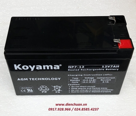 Ắc quy viễn thông 12V-7Ah công nghệ AGM của hãng Koyama