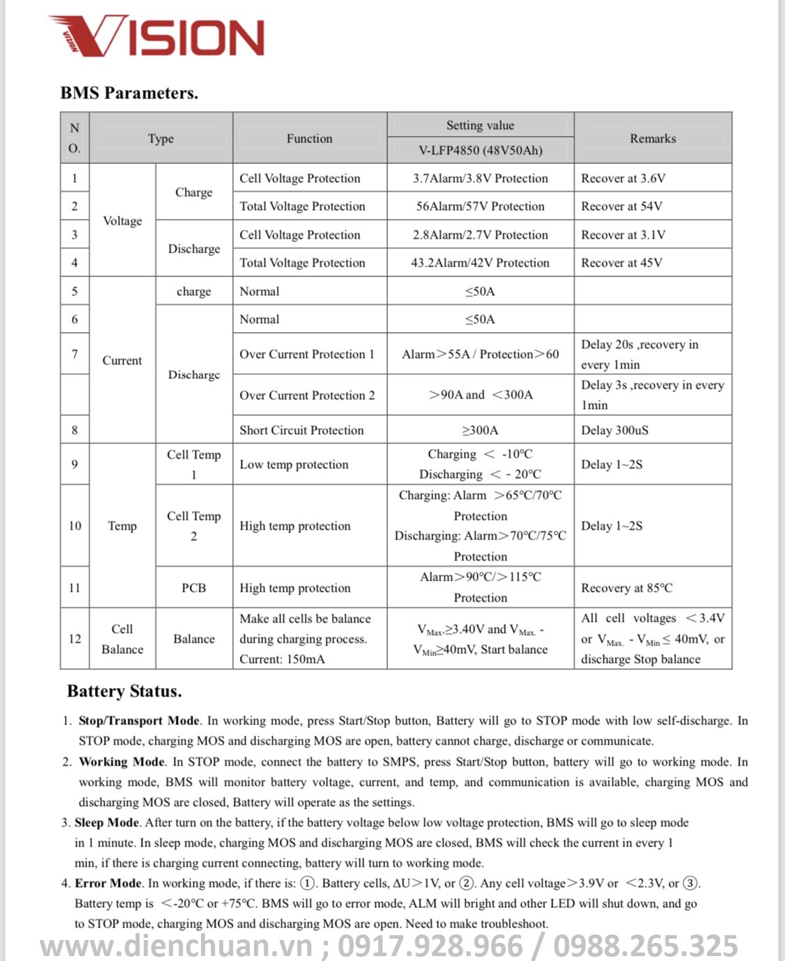 Ắc quy (pin) Lithium Vision 48V 50Ah V-LFP4850