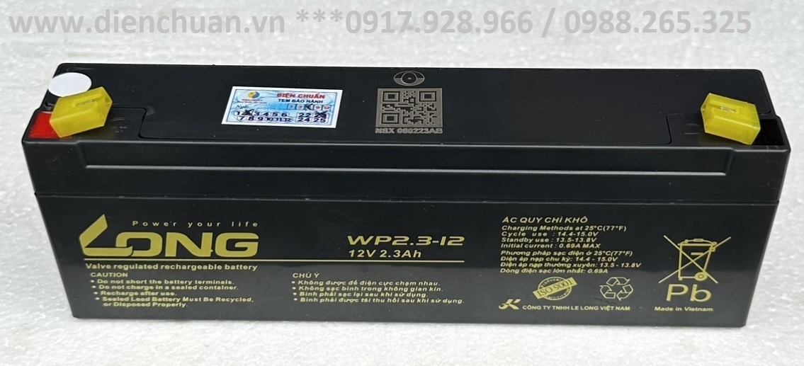 Công ty Điện Chuẩn là Đại Lý phân phối bình ắc quy của các thương hiệu nổi tiếng trên thế giới tại thị trường Việt Nam, Ắc quy LONG 12V 2.3Ah WP2.3-12 thương hiệu Kung Long ( Le Long ) của Đài Loan được Công ty chúng tôi kinh doanh phân phối lâu năm trên thị trường, các sản phẩm ắc quy Long của công ty chúng tôi bán ra là hàng mới chính hãng, giá cả phải chăng, bảo hành dài hạn, tư vấn nhiệt tình.
