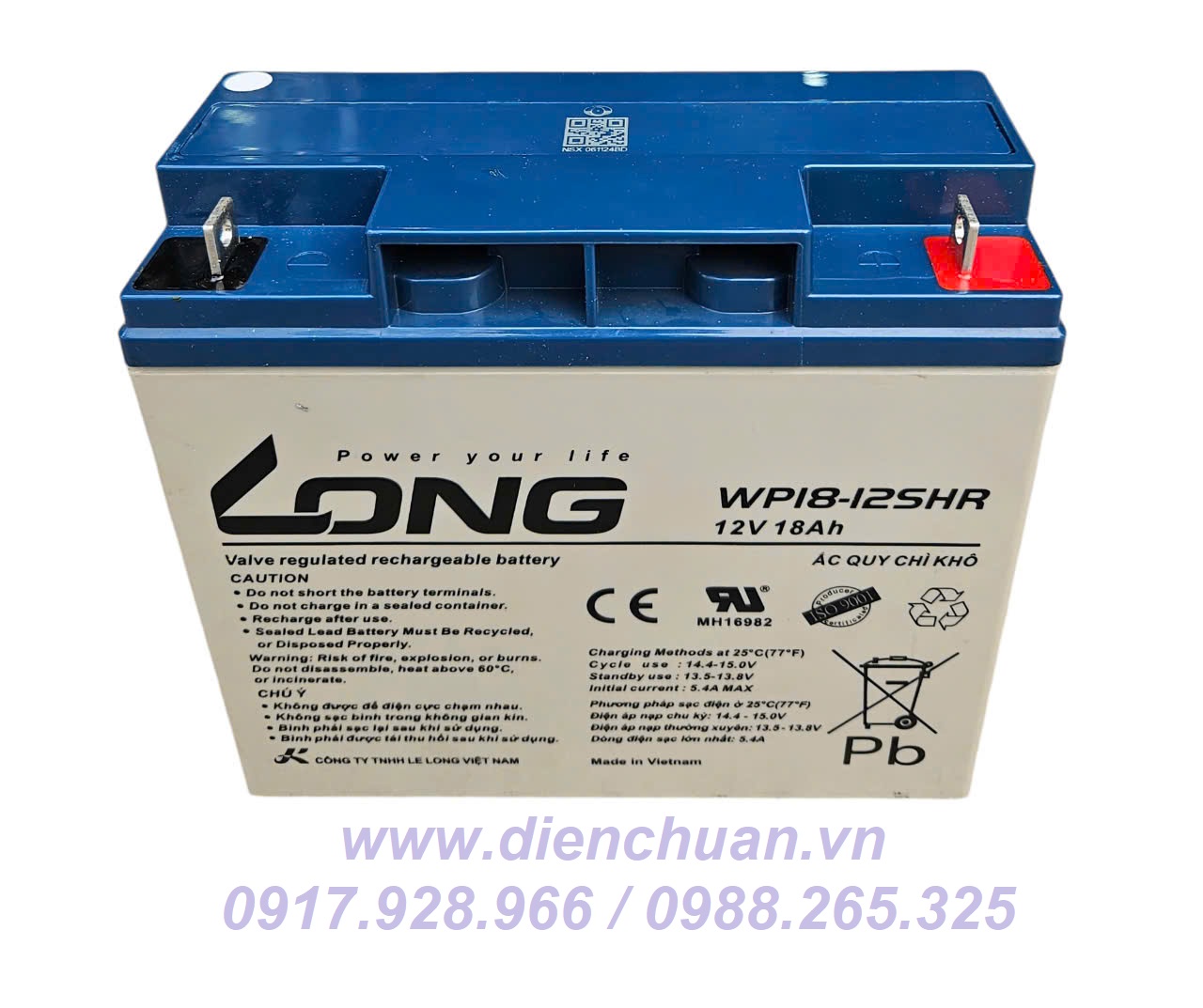 Ắc quy Long WP18-12SHR (12V 18ah) dùng cho lưu điện thang máy, lưu điện UPS, Inverter, Telecom, công nghiệp, viễn thông, dùng cho xe đạp điện, dùng cho loa kéo ....