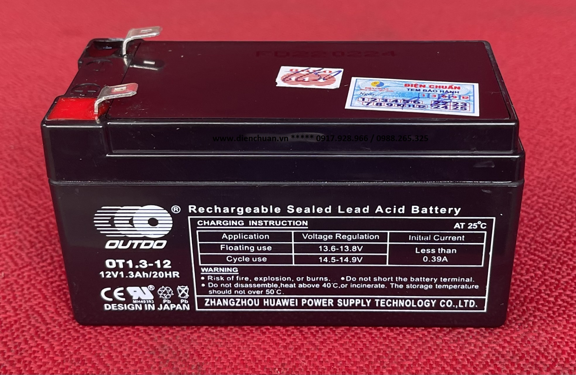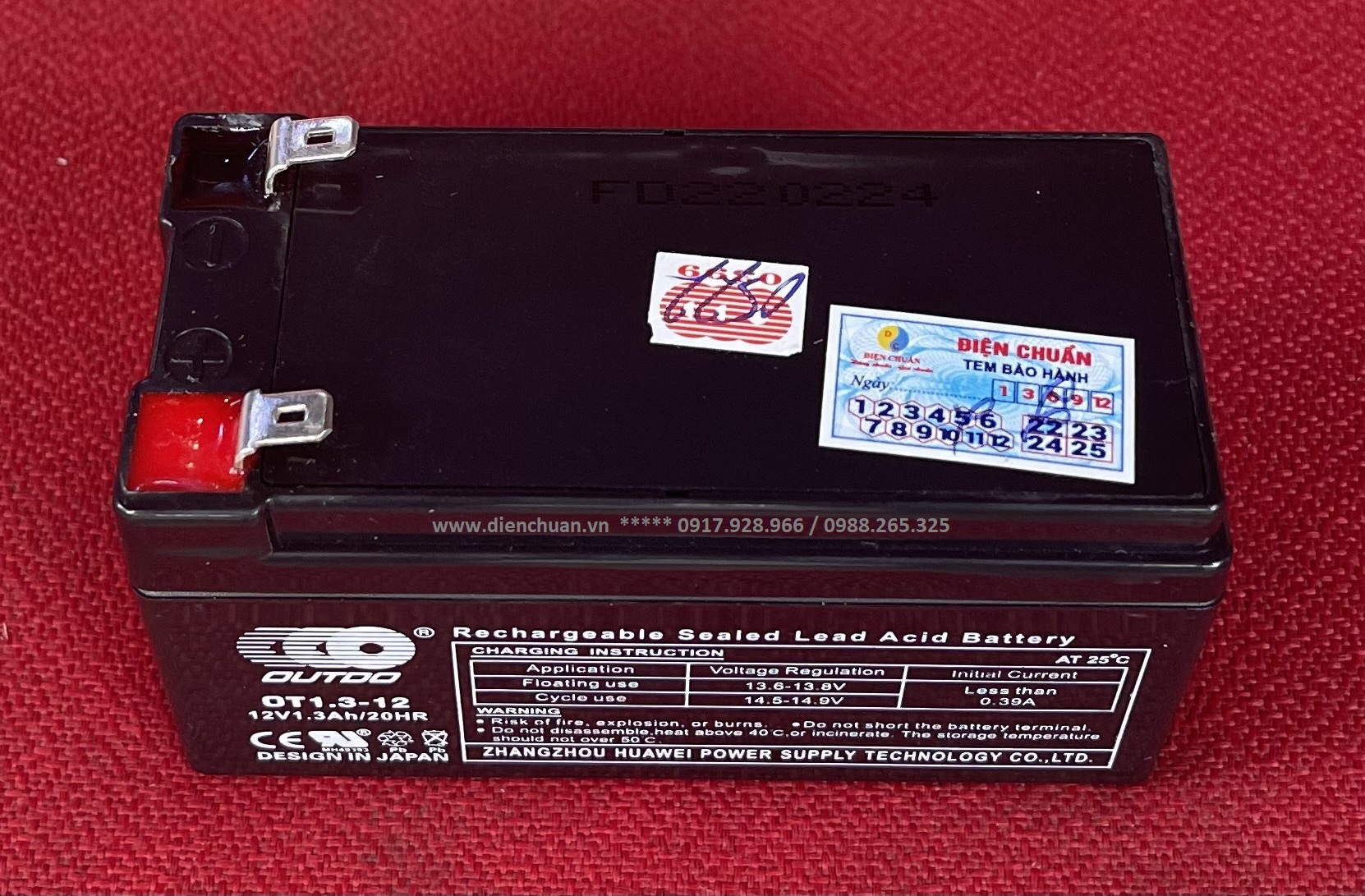 Công ty cổ phần Điện Chuẩn chuyên phân phối ắc quy Outdo chính hãng giá rẻ. Bình Ắc quy Ắc quy Outdo 12V-1.3Ah OT1.3-12 được công ty Điện Chuẩn bán tại các tỉnh: Hà Nội, Bắc Ninh, Vĩnh Phúc, Ninh Bình, Nam Định, Thái Bình, Hà Nam, Hải Phòng, Đà Nẵng, Thanh Hoá, Bình Dương, Đồng Nai, Thành phố Hồ Chí Minh và tất cả các tỉnh thành trong cả nước với giá thành hợp lý và chế độ bảo hành chu đáo nhất