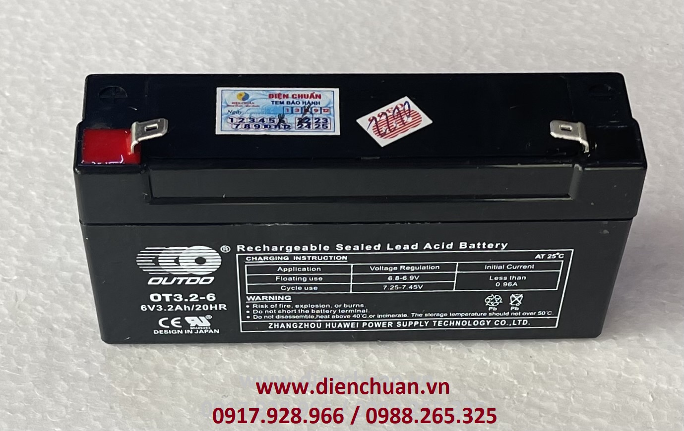 Công ty Điện Chuẩn là Đại Lý phân phối ắc quy Outdo 6V 3.2Ah OT3.2-6 3.2Ah-6V - thương hiệu Huawei sản xuất và nhập khẩu từ Trung Quốc, công ty chúng tôi kinh doanh phân phối bình ắc quy lâu năm trên thị trường, các sản phẩm ắc quy của công ty chúng tôi bán ra là hàng mới chính hãng, giá cả phải chăng, bảo hành dài hạn, tư vấn nhiệt tình