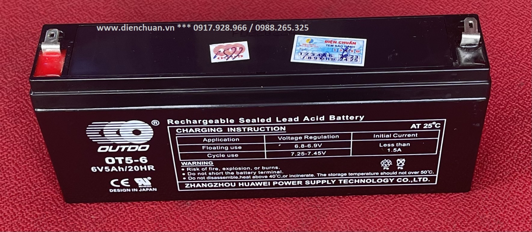 Công ty Điện Chuẩn được khách hàng đánh giá cao về chất lượng hàng hóa cũng như dịch vụ sau bán hàng, chúng tôi chuyên phân phối tất cả các bình ắc uy của các nhà sản xuất khác nhau, trong đó có bình ắc quy Ắc quy Outdo OT5-6 ( 6V 5Ah), Điện Chuẩn có dịch vụ giao hàng lắp đặt tận nơi cho quý khách. Ngoài ra công ty Điện Chuẩn chúng tôi còn hỗ trợ vận chuyển hàng ra gửi các bến xe về tất cả các tỉnh thành trên toàn quốc cho khách hàng, cũng như gửi chuyển phát COD qua bưu điện, Viettel, giao hàng nhanh, giao hàng tiết kiệm, J&T ... vv..., nhận được hàng quý khách mới phải thanh toán.