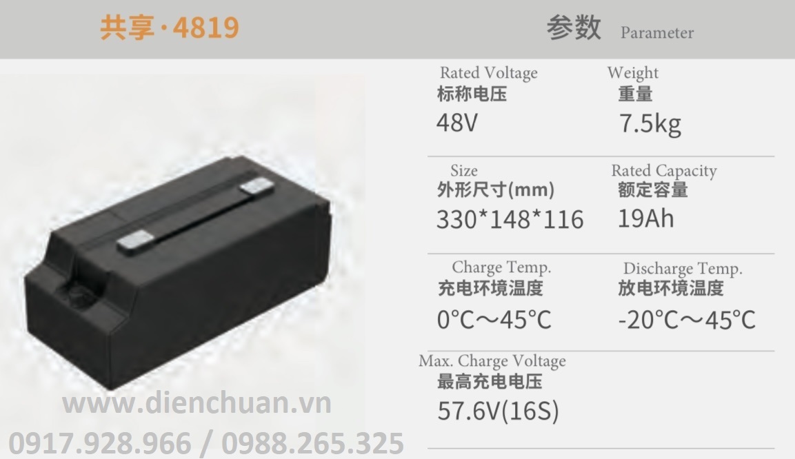Ắc quy/ Pin Lithium dùng cho xe điện Narada 4819 ( 48V 19Ah) dòng Gongxiang