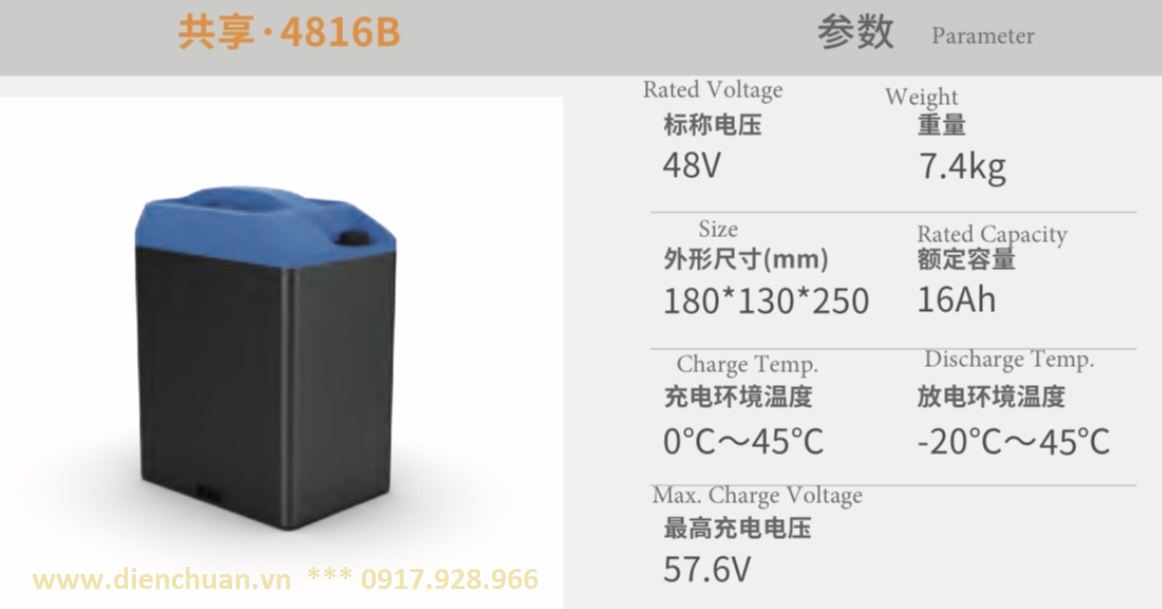 Ắc quy/ Pin Lithium dùng cho xe điện Narada 4816B ( 48V 16Ah) Gongxiang Series