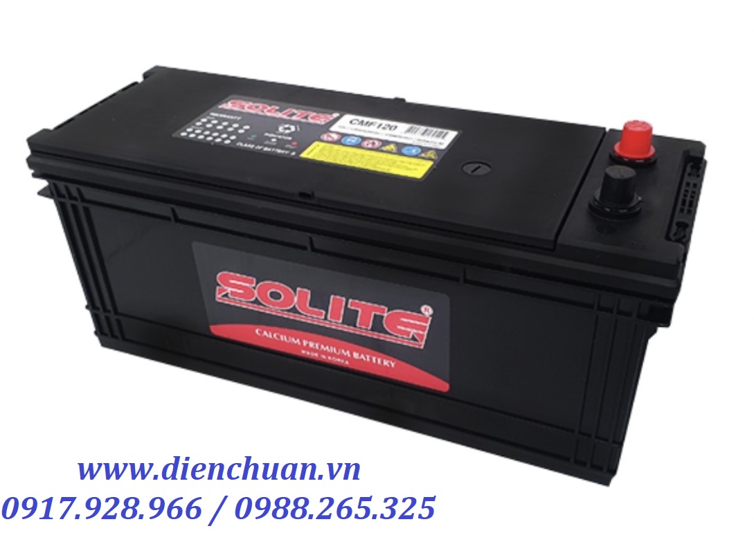Bình ắc quy Solite CMF120 (12V-120Ah) mang dòng khởi động là 850 (CCA). Là loại ắc quy miễn bảo dưỡng (Maintenance Free - MF) Thiết kế đạt chuẩn công nghệ MF bên trong cho phép ắc quy giảm thiểu tối đa chất điện phân, ắc quy được sử dụng tấm cách siêu Polymer có bộ phân tách điện trở thấp