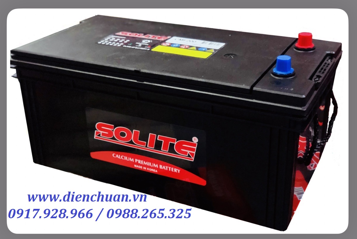 - Ắc quy Solite CMF 200 (12V-200AH) mang dòng khởi động là 1100 (CCA). Là loại ắc quy miễn bảo dưỡng (Maintenance Free - MF) vì thiết kế đạt chuẩn công nghệ MF bên trong cho phép ắc quy giảm thiểu tối đa chất điện phân, ắc quy được sử dụng tấm cách siêu Polymer có bộ phân tách điện trở thấp.