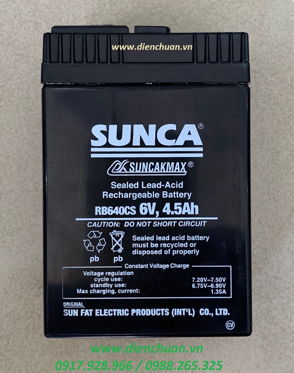 Công ty Cổ Phần Điện Chuẩn là đại lý phân phối ắc quy thương hiệu SUNCA chính hãng tại thị trường Việt Nam. Ắc quy Sunca 6V 4.5Ah ( RC645C/RB645C/RB640CS ) được công ty Điện Chuẩn bán tại các tỉnh: Hà Nội, Bắc Ninh, Vĩnh Phúc, Ninh Bình, Nam Định, Thái Bình, Hà Nam, Hải Phòng, Đà Nẵng, Thanh Hoá, Bình Dương, Đồng Nai, Thành phố Hồ Chí Minh và các tỉnh thành trong cả nước với giá thành phải chăng và chế độ bảo hành chu đáo nhất.