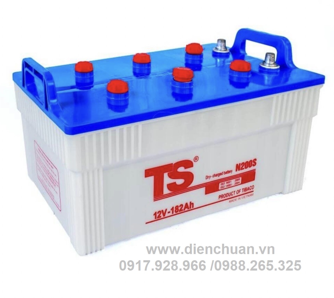 Bình Ắc quy TS 12V 182Ah N200S Sử dụng cho các loại xe ô tô tải : Chiến Thắng, Hino, Hoàng Trà, Hyundai, Samco, Trường Hải, Veam, Vinaxuki, Xe tải, xe công trình, xe Bus, xe khách 45 chỗ, lắp cho máy phát điện, kích điện .... ...