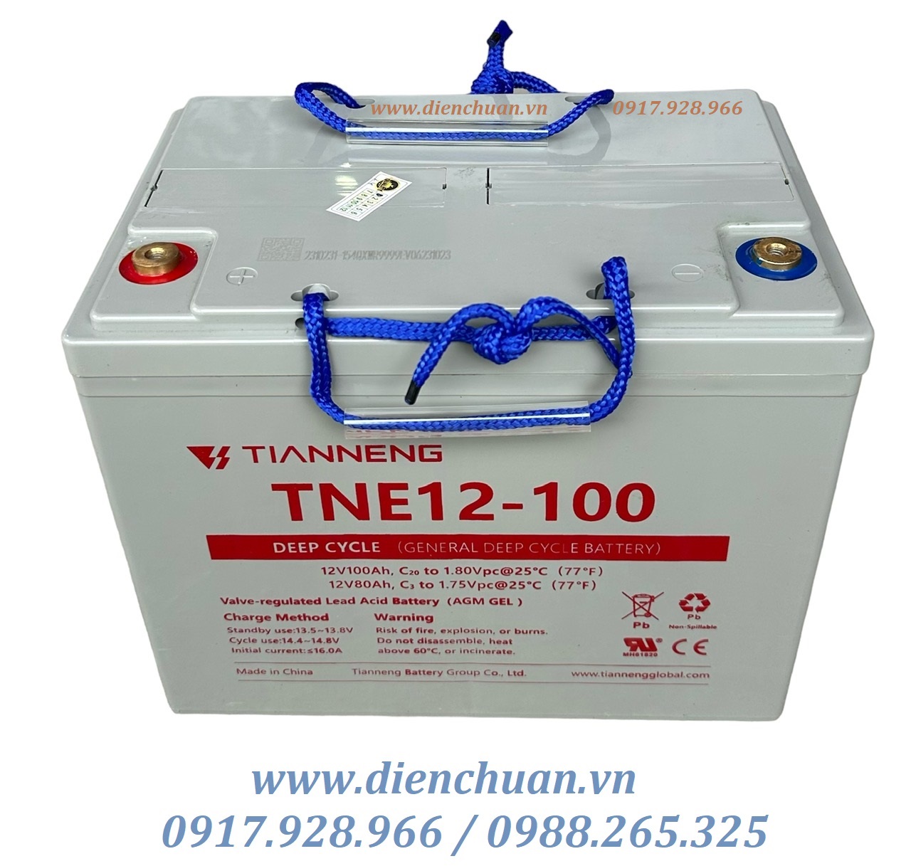 Ắc quy viễn thông Tianneng TNE12-100 (12V-100AH ) là một trong những loại ắc quy viễn thông xả sâu (Deep cycle) rất tốt hiện nay, chuyên dùng cho solar năng lượng mặt trời, bộ lưu điện ups, kích điện, xe nâng điện, thiết bị an ninh, thiết bị mạng, Xe ô tô điện lau sàn/ chà sàn trong sân bay, siêu thị, xe điện chạy trong khu công nghiệp ....