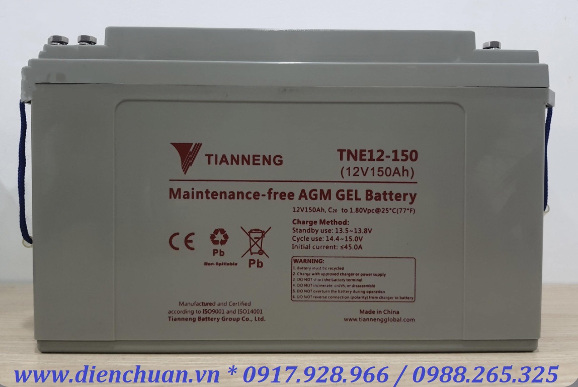 Công ty cổ phần Điện Chuẩn chuyên phân phối ắc quy Tianneng chính hãng giá rẻ. Bình Ắc quy Tianneng TNE12-150 (12V-150AH ) được công ty Điện Chuẩn bán tại các tỉnh: Hà Nội, Bắc Ninh, Vĩnh Phúc, Ninh Bình, Nam Định, Thái Bình, Hà Nam, Hải Phòng, Đà Nẵng, Thanh Hoá, Bình Dương, Đồng Nai, Thành phố Hồ Chí Minh và tất cả các tỉnh thành trong cả nước .