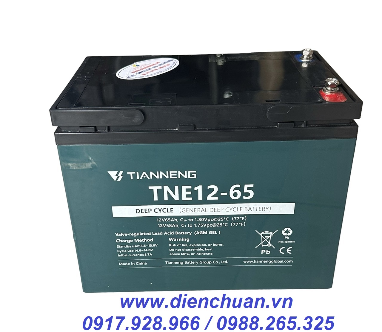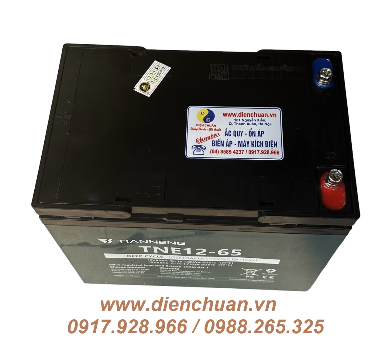 Công ty cổ phần Điện Chuẩn chuyên phân phối ắc quy Tianneng / 天能 / Thiên Năng chính hãng giá rẻ. Bình Ắc quy Tianneng TNE12-65 (12V-65AH ) được công ty Điện Chuẩn bán tại các tỉnh: Hà Nội, Bắc Ninh, Vĩnh Phúc, Ninh Bình, Nam Định, Thái Bình, Hà Nam, Hải Phòng, Đà Nẵng, Thanh Hoá, Bình Dương, Đồng Nai, Thành phố Hồ Chí Minh và tất cả các tỉnh thành trong cả nước với giá rẻ và chế độ bảo hành chu đáo.