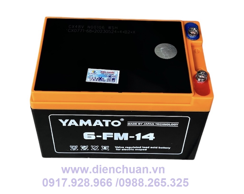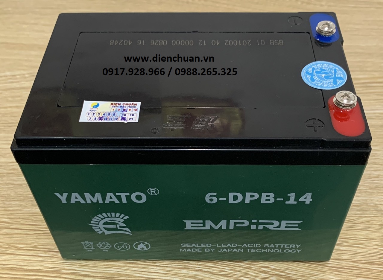 Ắc quy khô Yamato 14Ah 6-FM-14/ 6-DPB-14/ 6-DZF-14/ 6-DZM-14 là một trong những loại ắc quy viễn thông xả sâu (Deep cycle) rất tốt, chuyên dùng cho xe đạp điện, bộ lưu điện ups, quạt ắc quy 12V, loa kéo, thiết bị an ninh, thiết bị mạng....