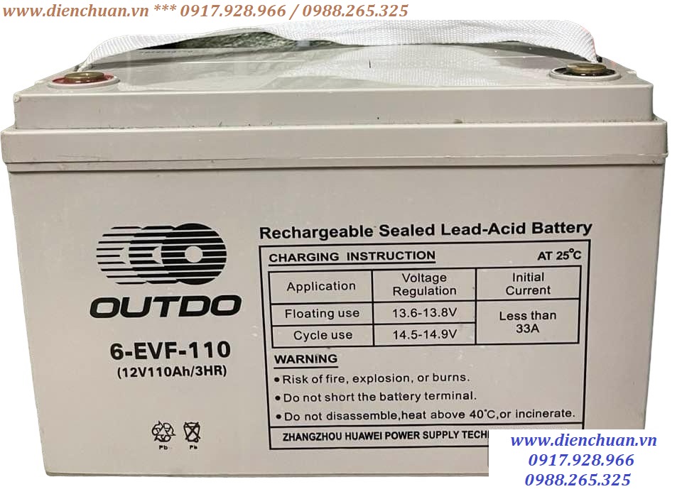 Công ty Điện Chuẩn là đại lý phân phối bán buôn bán lẻ thương hiệu bình ắc quy Outdo chính hãng tại Việt Nam, Ắc quy xả sâu Outdo 6-EVF-110 ( 12V 110Ah) được công ty Điện Chuẩn bán tại các tỉnh Hà Nội , Bắc Ninh , Ninh Bình , Nam Định, Ninh Bình,Hải Phòng , Đà Nẵng , Thanh Hoá và Thành phố Hồ Chí Minh và tất cả các tỉnh thành trên cả nước với giá thành phải chăng và chế độ bảo hành chu đáo nhất