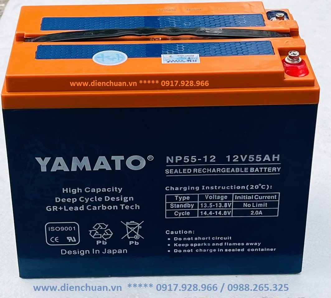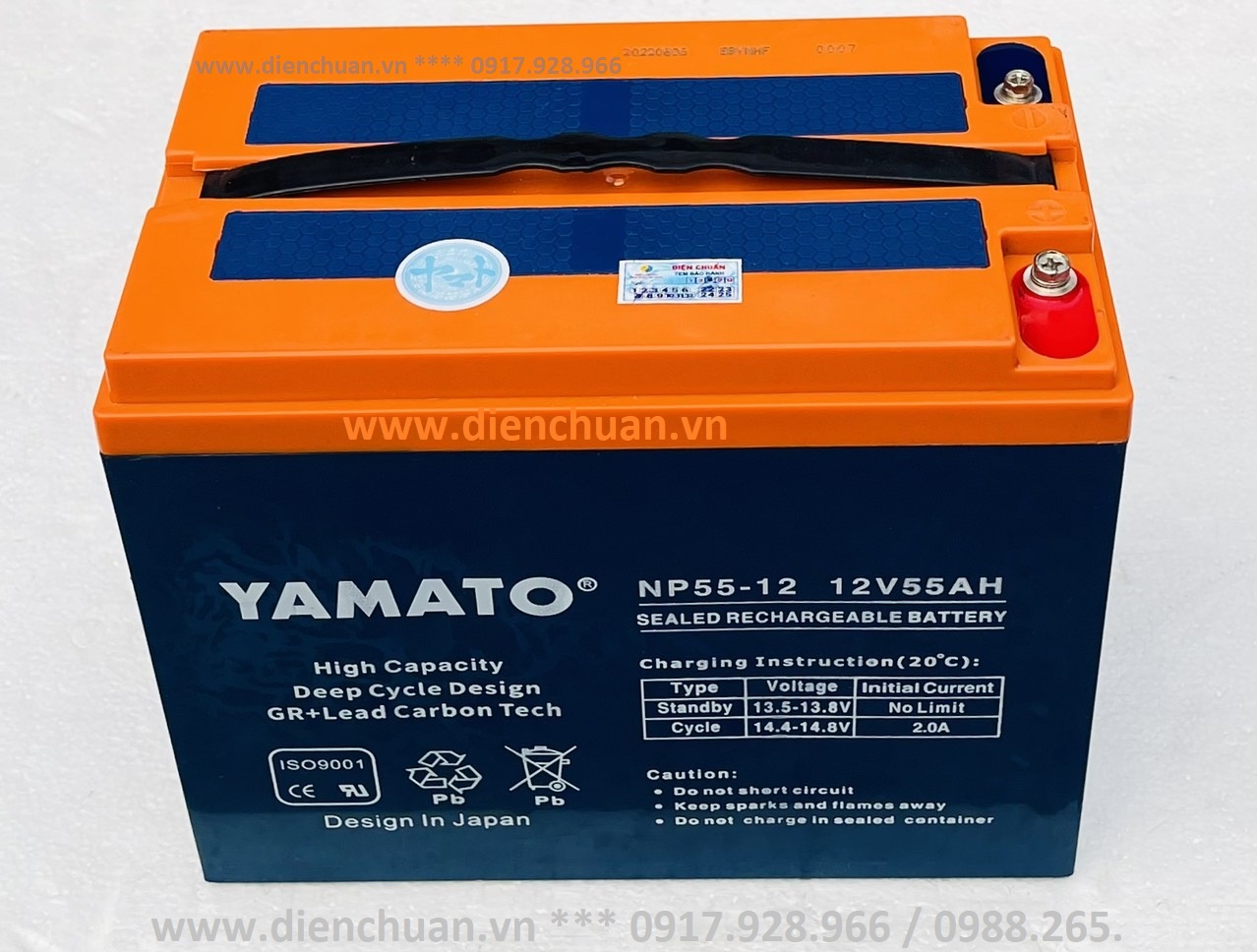 Bình Ắc quy Yamato 12V 55Ah NP55-12 được công ty Điện Chuẩn phân phối đảm bảo hàng chính hãng, giá thành tốt nhất và chế độ bảo hành chu đáo nhất