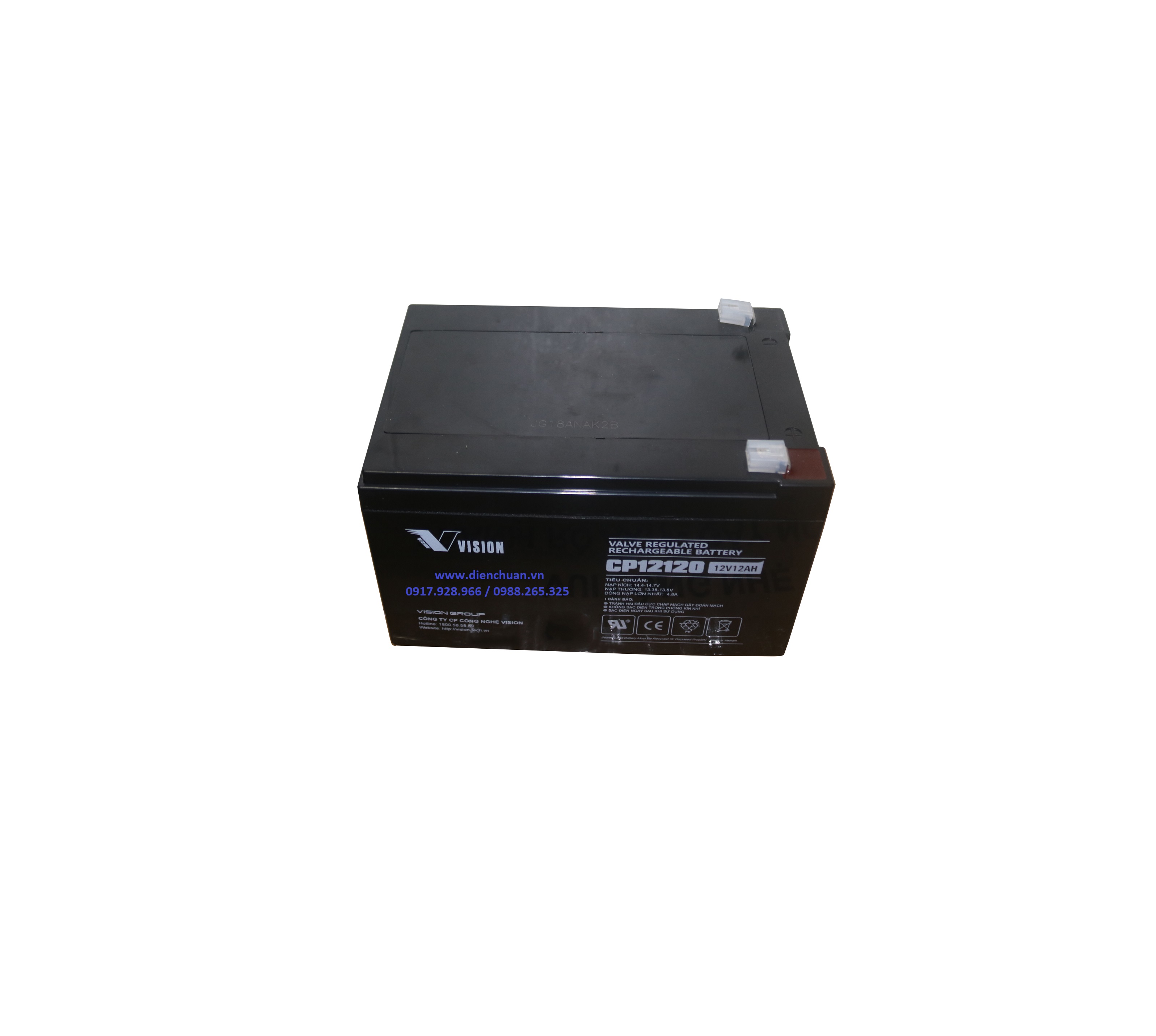 Ắc quy Vision CP12120 ( 12V 12Ah) chính hãng, giá tốt, sản xuất tại Việt Nam được công ty cổ phần Điện Chuẩn phân phối tại: Hà Nội, Tp HCM, Đà Nẵng, Hải Phòng, Bắc Ninh, Vĩnh Phúc.... dùng cho lưu điện UPS, kích điện, Solar năng lượng mặt trời, thiết bị viễn thông, thiết bị mạng ... vv ...