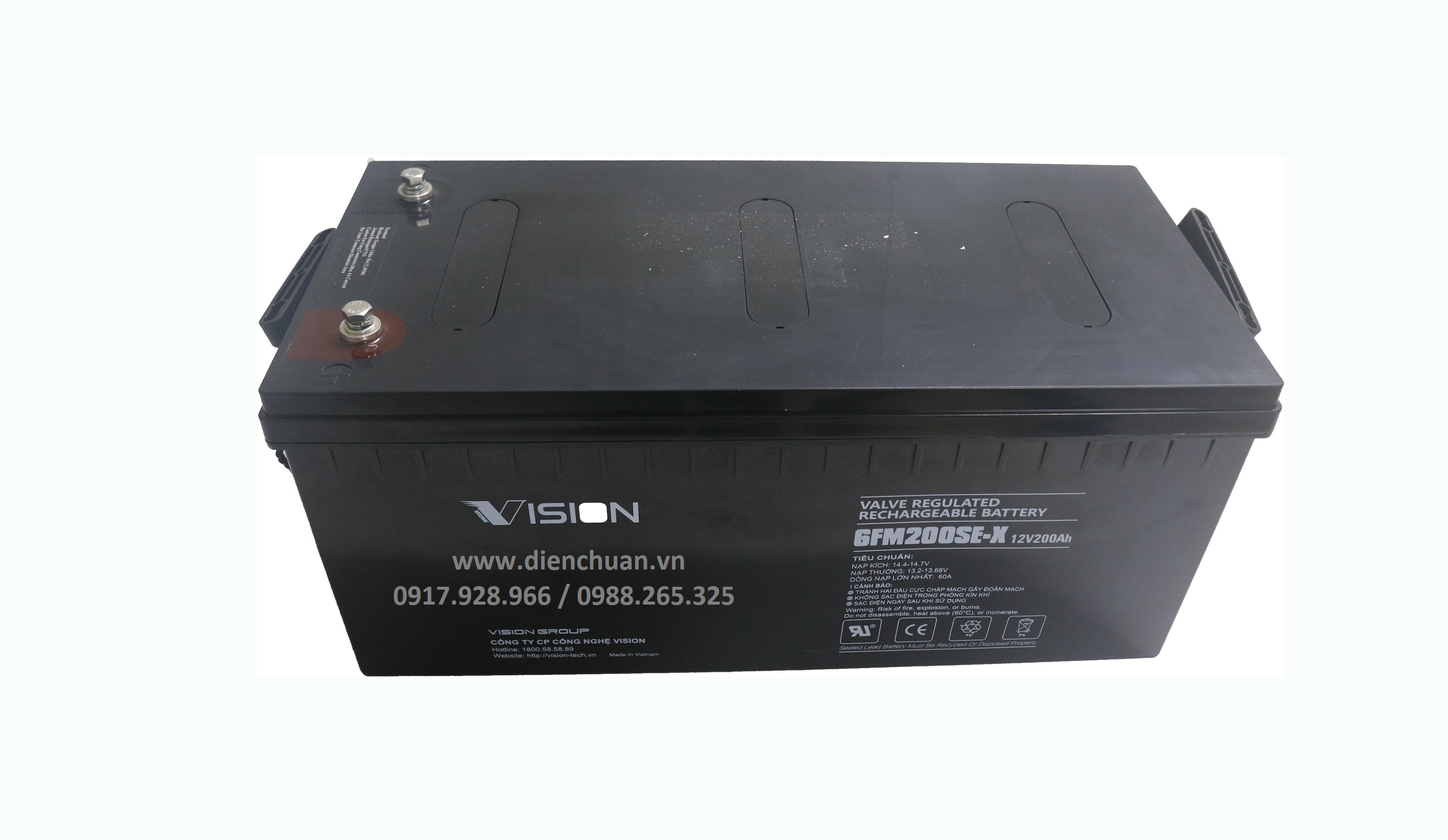 - Ắc quy viễn thông Vision 6FM200SE-X 12V 200Ah công nghệ AGM được người tiêu dùng đánh giá là một trong những sản phẩm có chất lượng, tuổi thọ tốt nhất khi nhắc đến ngày công nghiệp ắc quy viễn thông hiện nay. Vỏ bình được làm bằng chất liệu nhựa ABS hoặc HBO có khả năng chống cháy tốt, cho độ bền cao.