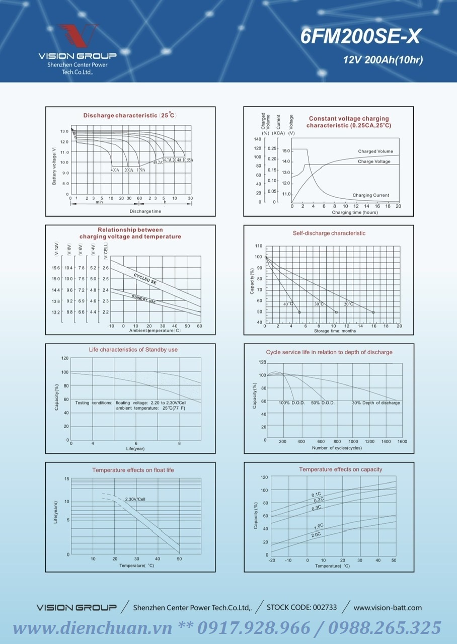 Thông tin về ắc quy viễn thông Vision 6FM200SE-X ( 12V 200Ah)