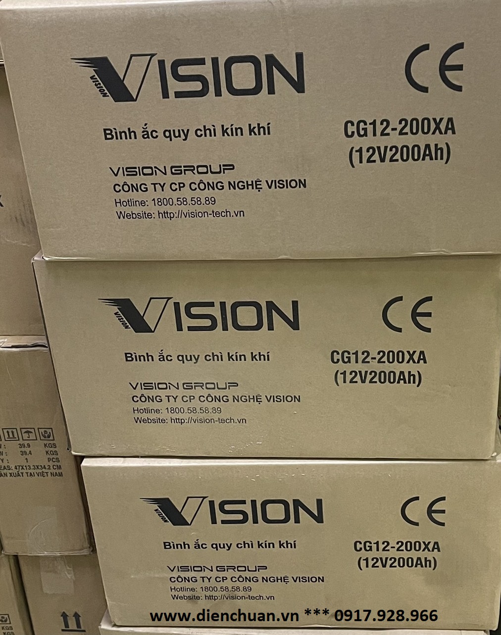 Công ty cổ phần Điện Chuẩn chuyên phân phối ắc quy Vision chính hãng giá rẻ. Bình Ắc quy Vision CG12-200XA ( 12V 200Ah) được công ty Điện Chuẩn bán tại các tỉnh: Hà Nội, Bắc Ninh, Vĩnh Phúc, Ninh Bình, Nam Định, Thái Bình, Hà Nam, Hải Phòng, Đà Nẵng, Thanh Hoá, Bình Dương, Đồng Nai, Thành phố Hồ Chí Minh và tất cả các tỉnh thành trong cả nước .