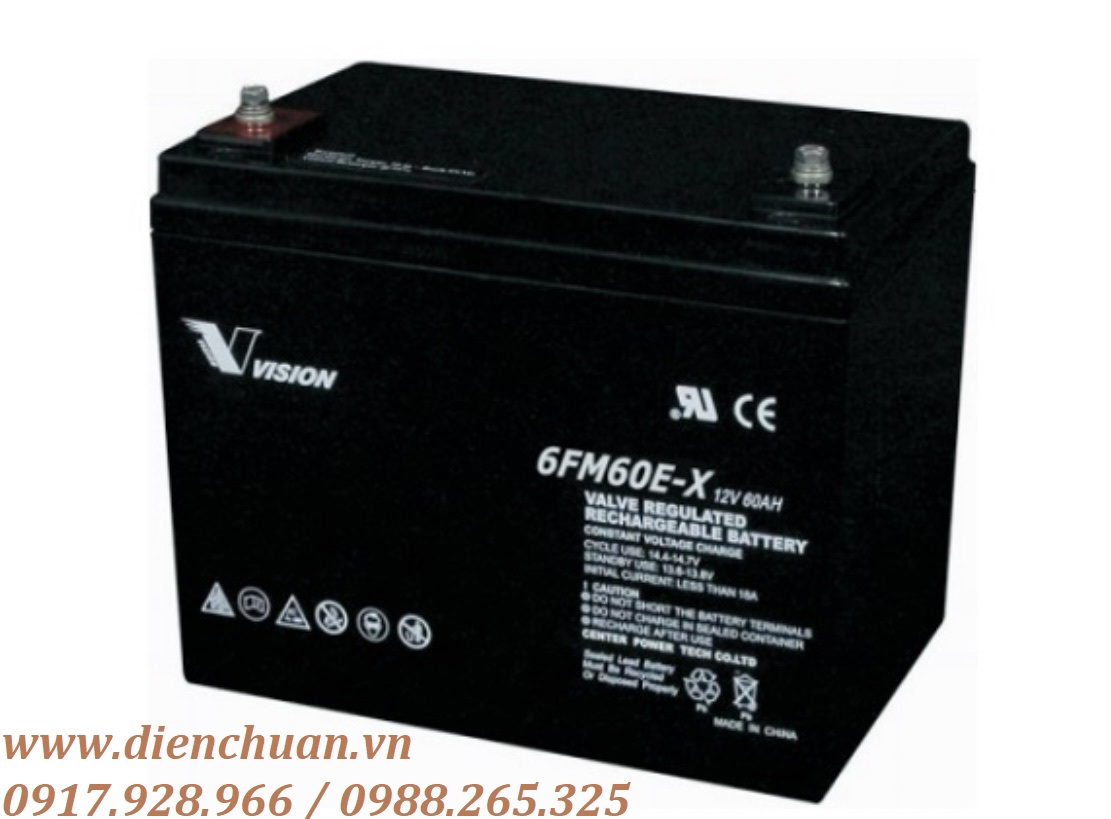 Ắc quy Vision 6FM60-X/ 6FM60E-X ( 12v 60AH ) là dòng Sản phẩm FM đáp ứng mong đợi của nhiều đối tác khách hàng, bởi FM đạt được các tiêu