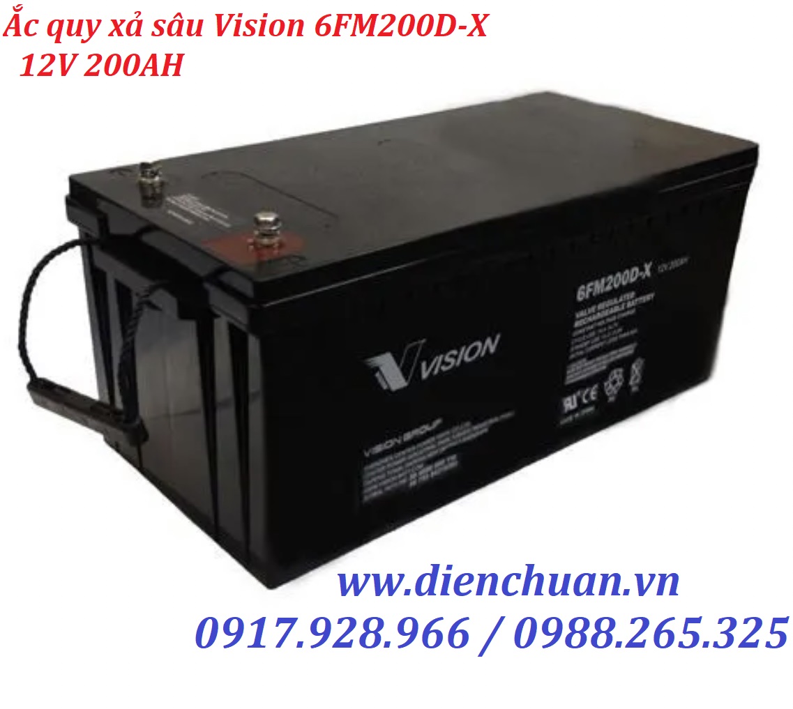 Ắc quy Vision 200ah dòng D ( 6FM200D-X ) là dòng ắc quy xả xâu, phù hợp cho dùng kích điện - inverter solar, lưu trữ hệ thống pin năng lượng mặt trời....