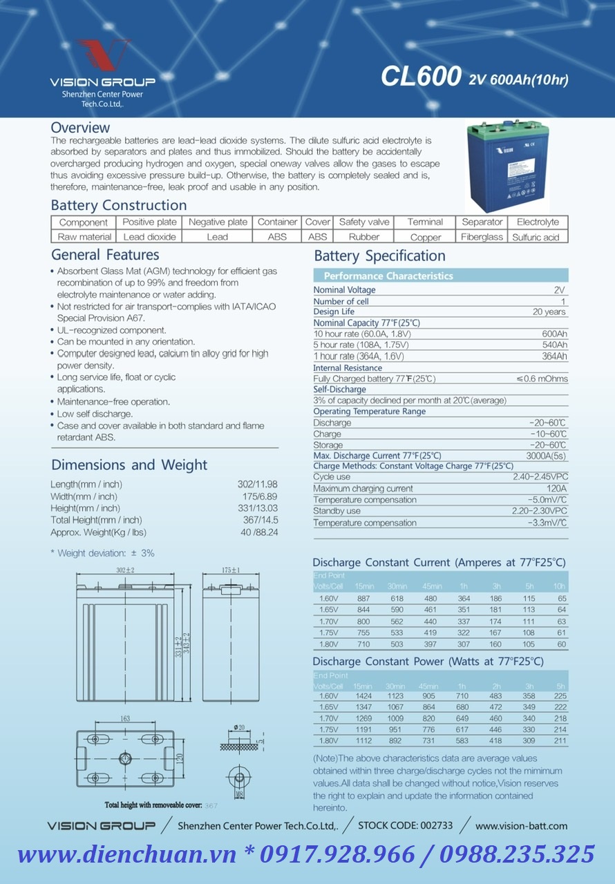 Quý khách cần tư vấn mua hàng ắc quy Vision CL600 ( 2V 600Ah ) xin vui lòng liên hệ: