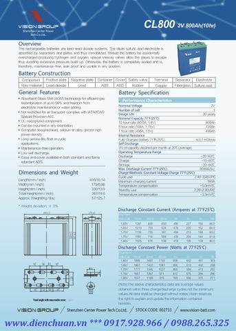 Công ty Điện Chuẩn chuyên cung cấp các sản phẩm ắc quy thương hiệu Vision chính hãng giá rẻ . Ắc quy Vision CL800 ( 2V 800Ah ) được công ty Điện Chuẩn bán tại các tỉnh Hà Nội , Bắc Ninh , Ninh Bình , Nam Định, Ninh Bình,Hải Phòng , Đà Nẵng , Thanh Hoá và Thành phố Hồ Chí Minh và tất cả các tỉnh thành trên cả nước với giá thành hợp lý phải chăng và chế độ bảo hành chu đáo nhất