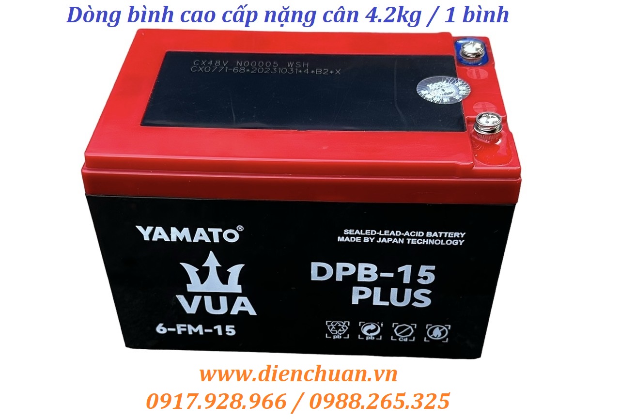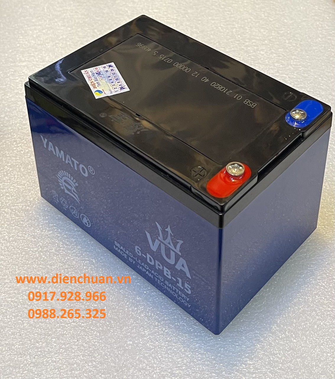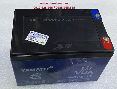 Ắc quy khô Yamato Vua 6-DPB-15/ 6-FM-15/ YMT-12-15 ( 12V 15Ah) là một trong những loại ắc quy lắp cho xe đạp điện, dùng cho loa kéo, quạt sạc 12V, bóng đèn 12V, động cơ điện 12V tốt nhất trên thị trường hiện nay.