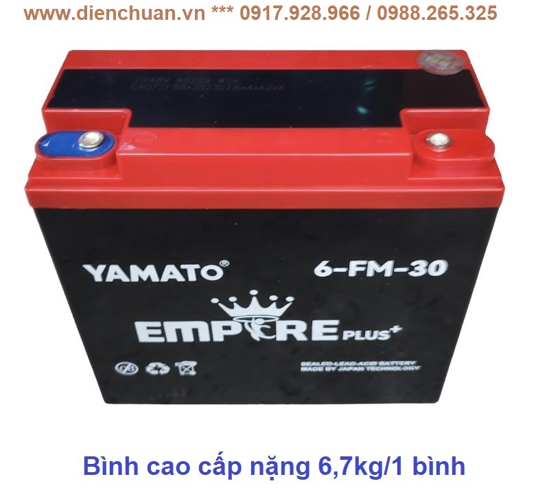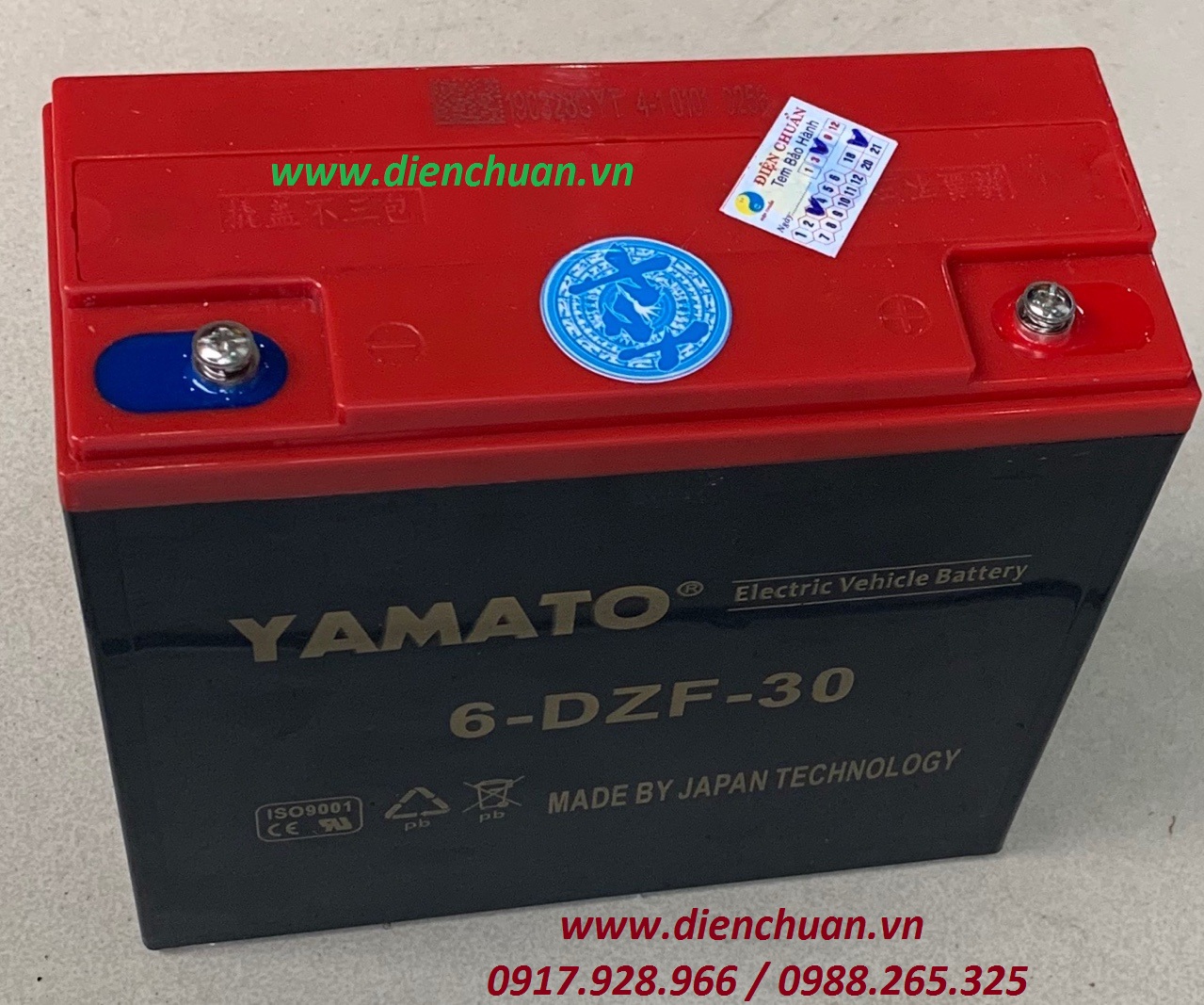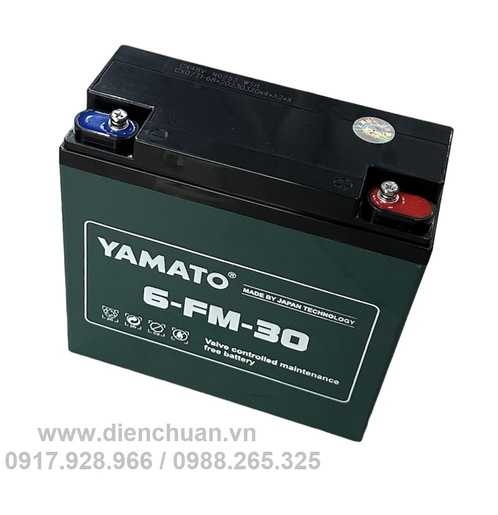 Ắc quy khô Yamato 6-DZF-30/ 6-FM-30/ 6-DPB-30 / YMT-12-30( 12V 30Ah) là loại ắc quy kín khí, không cần bảo dưỡng là một trong những loại ắc quy lắp cho xe đạp điện tốt nhất trên thị trường hiện nay.