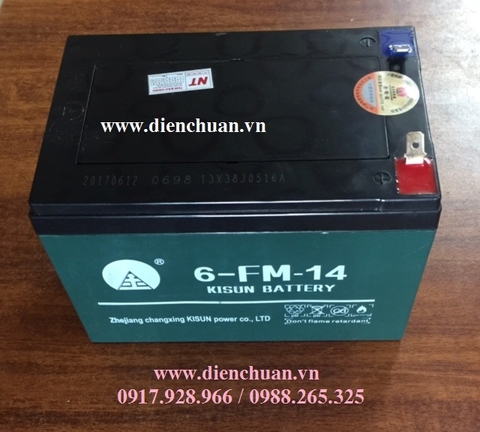 Ắc quy xe đạp điện Kisun 12V 14Ah 6-FM-14 ( 1 bộ 4 bình đấu nối tiếp lên 48V 14Ah )