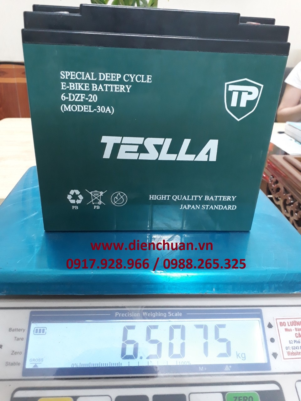 Tại Công ty Điện Chuẩn đang bán bình Ắc quy TESLLA 6-DZF-20 ( Model 30A) là : 530,000 VND, bạn có thể dễ dàng liên hệ với chúng tôi qua số điện thoại / ZALO: 0917.928.966 / 0988.265.325 để có thể nhận được các khuyến mại và mua sản phẩm ắc quy chính hàng với giá rẻ hơn so với các cửa hàng khác trong khu vực.